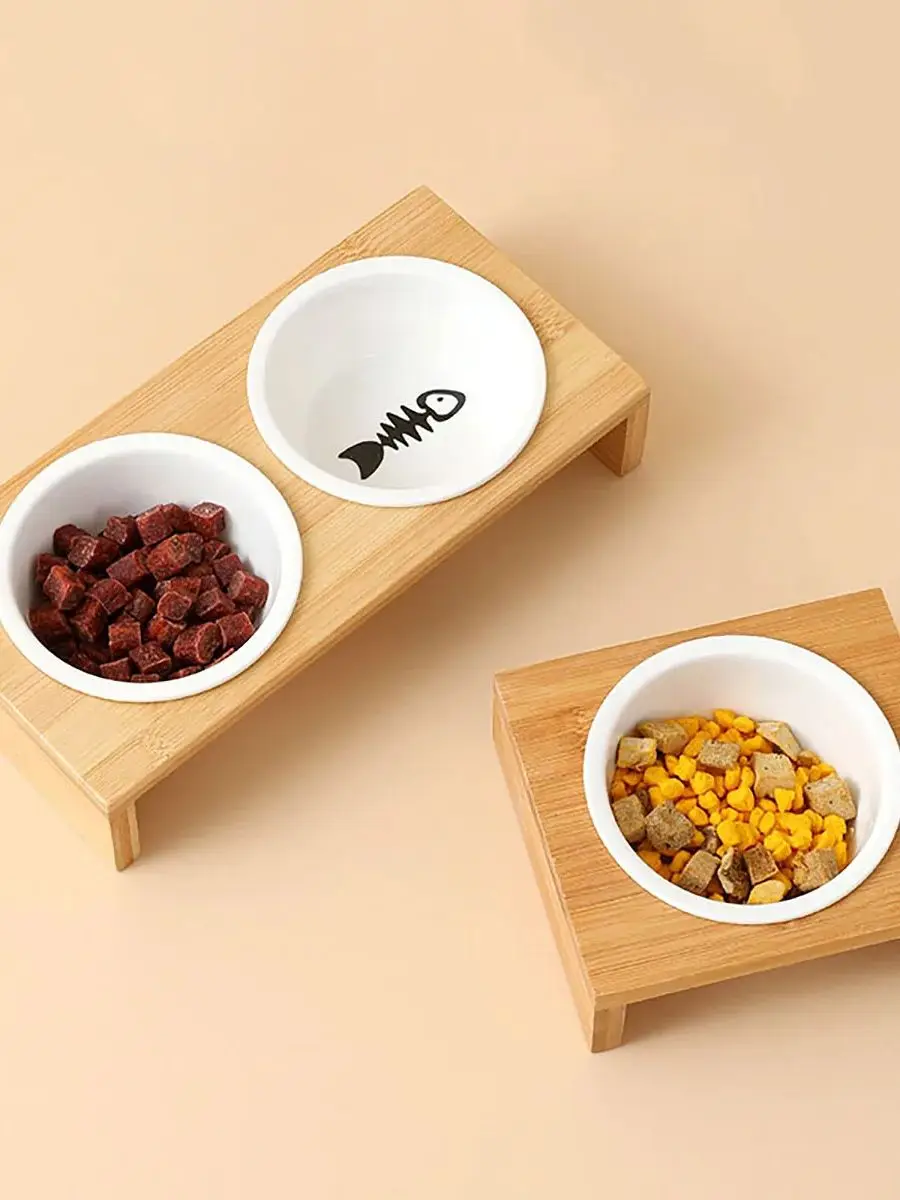 Ceram Paws, Double Ceramic Pet Bowl Set with Bamboo Stand – Elegant Dining for Your Furry Friends