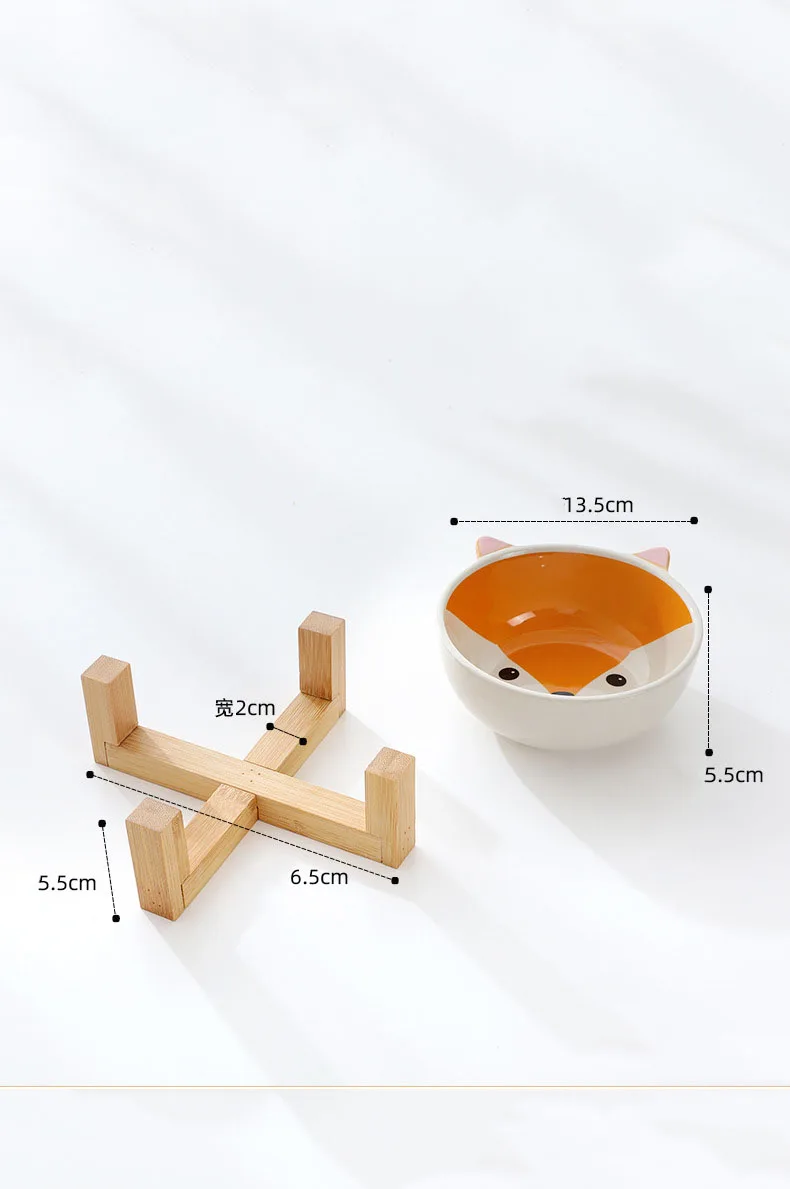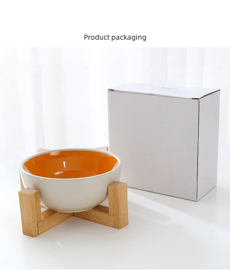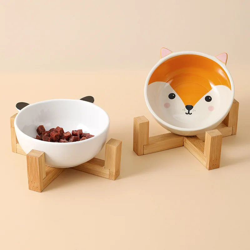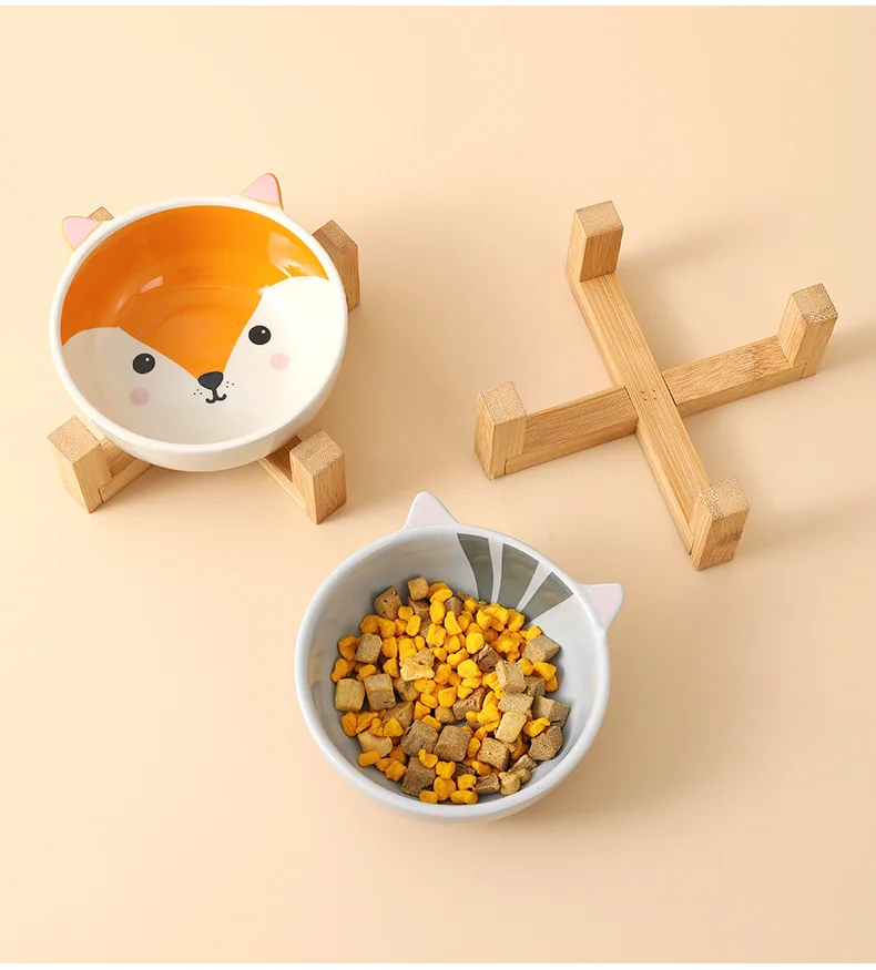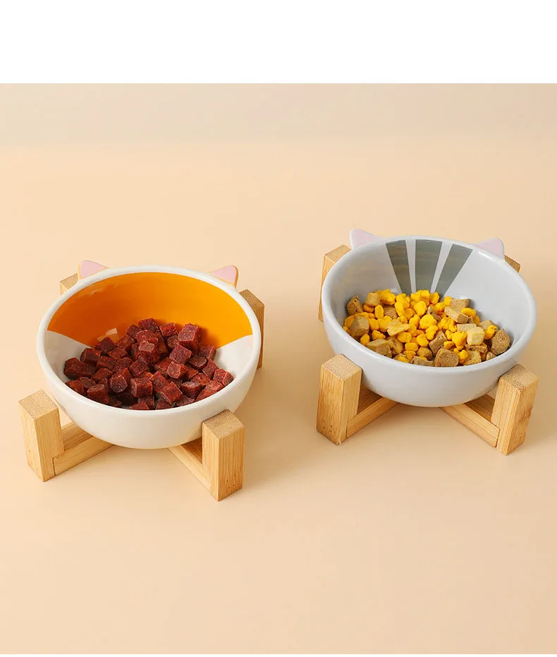 Ceramic Pet Bowl Set with Wooden Rack, Stylish Tableware for Dogs and Cats, Perfect for Food and Water Feeding