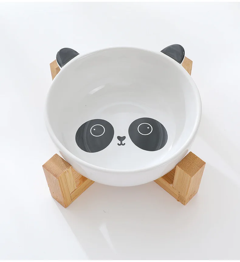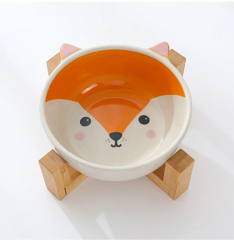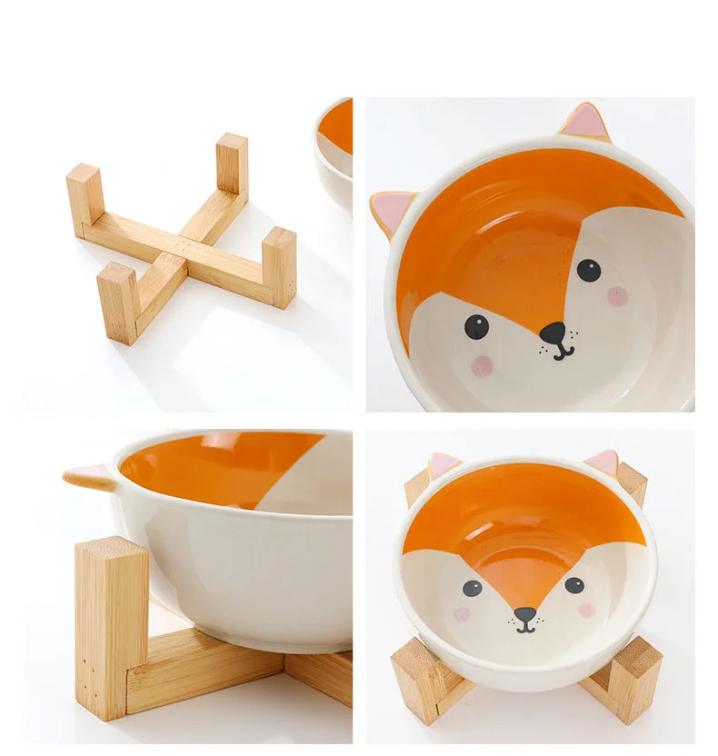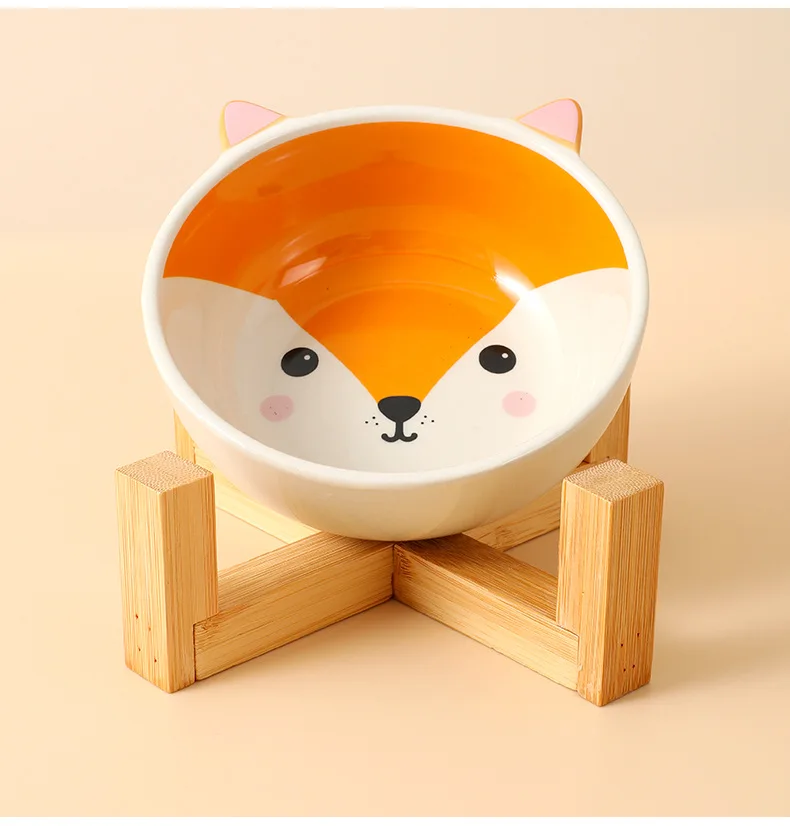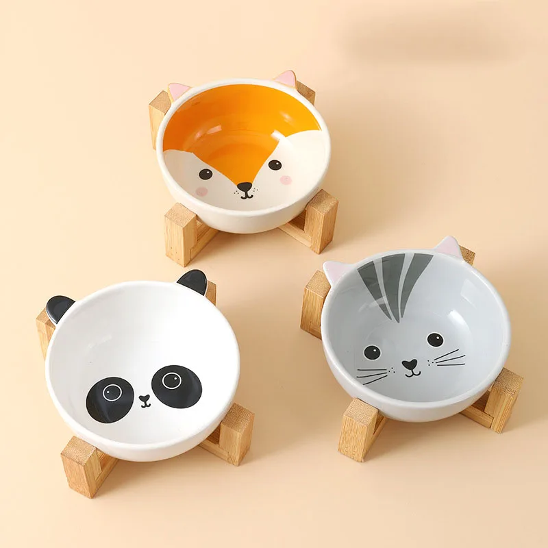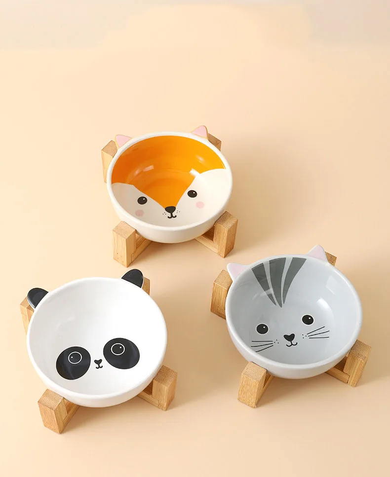 Ceramic Pet Bowl Set with Wooden Rack, Stylish Tableware for Dogs and Cats, Perfect for Food and Water Feeding