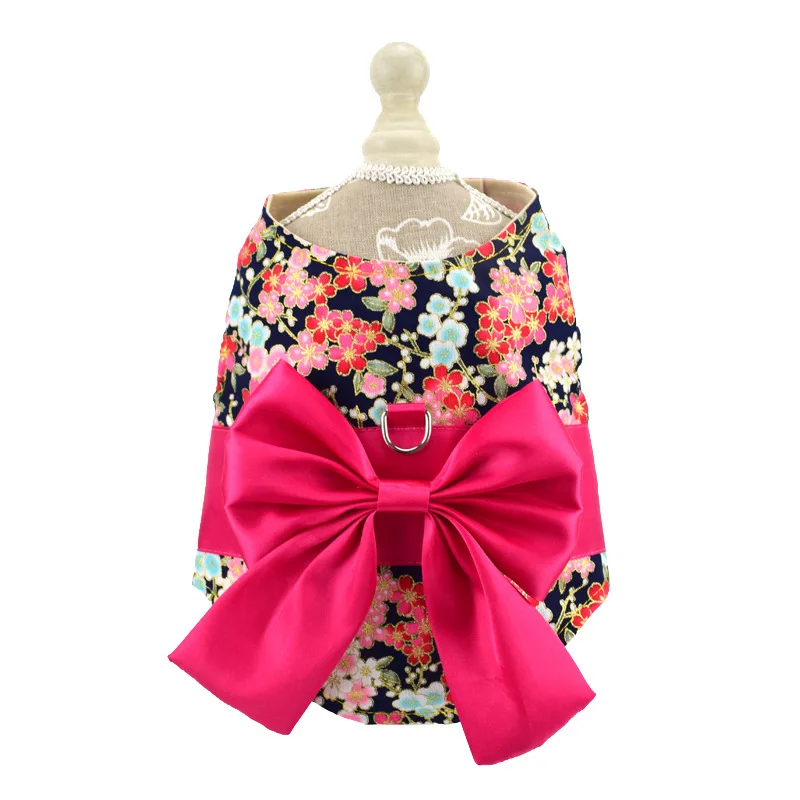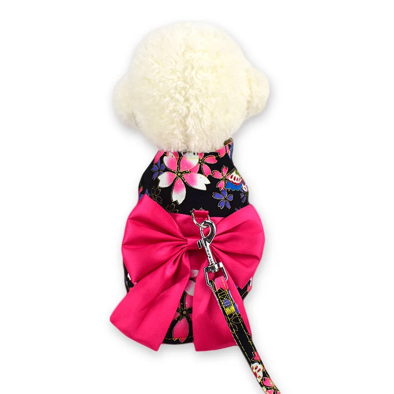 Cherry Blossom Princess Set: Adorable Dog Towing Rope with Bow Shirt and Chest Strap