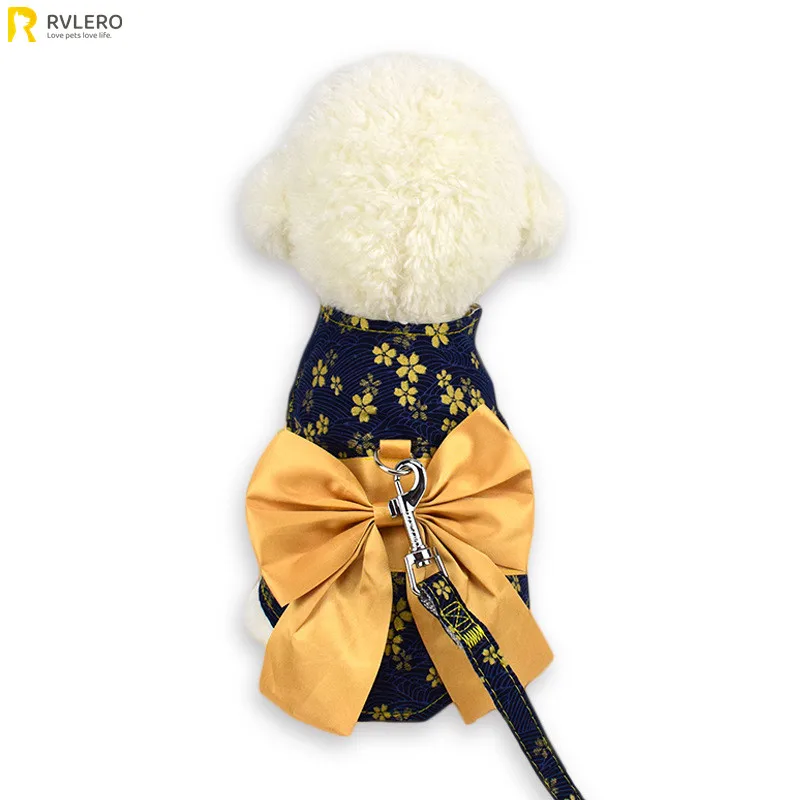 New pet walking dog leash leash chest and back and wind bow printing undershirt pet leash dog chest back strap Pet Accessories