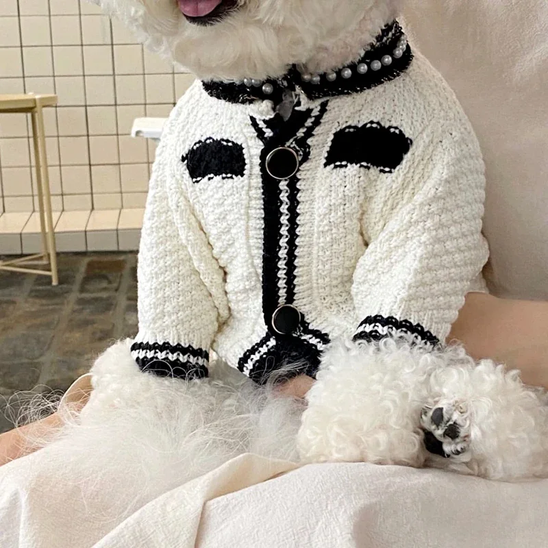 Chic Canine Couture, Designer Knitted Sweater with Jewelry Decoration for Your Fashionable Pup