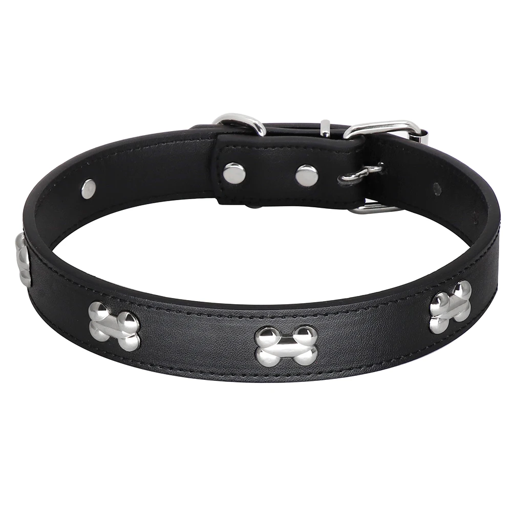 Leather Dog Cat Collar Adjustable Puppy Kitten Collars Bone Dog Necklace Accessories for Small Dogs Cats Chihuahua Pet Product