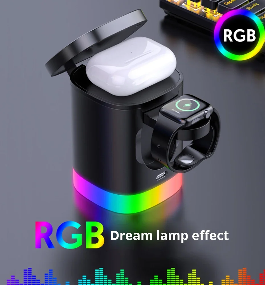 Charger With colorful lighting, you can control the light through the button to turn on or turn off, not only a multi -function wireless charging, but also a decoration