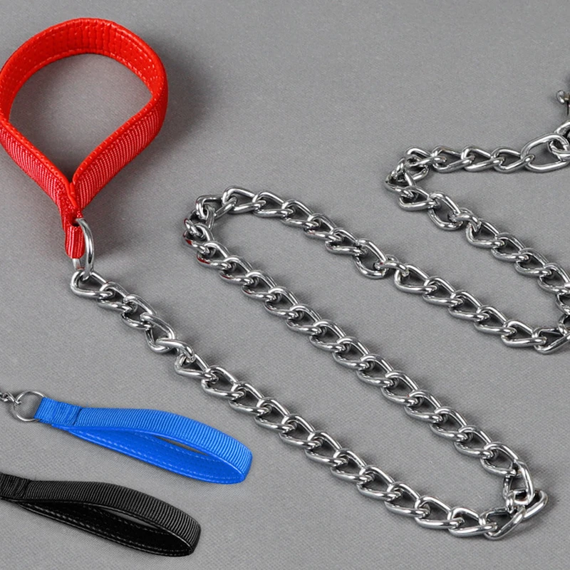 Chrome Comfort Leash, Foam Handled Chrome-Plated Dog Chain Traction Belt, Durable and Chew-Resistant for Optimal Control and Comfort
