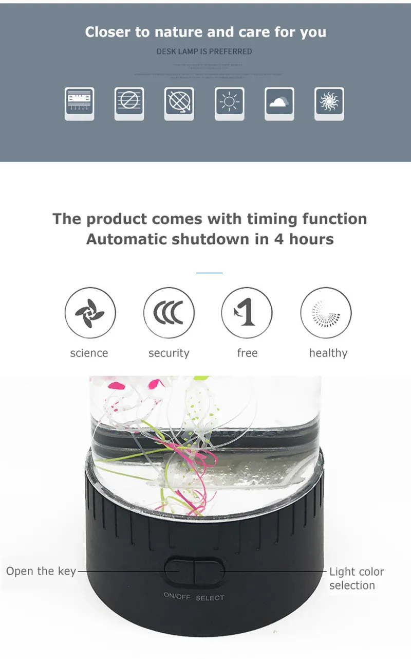 This LED table aquarium lamp with two artificial jellyfishes that provide a fancy atmosphere like real jellyfishes.
