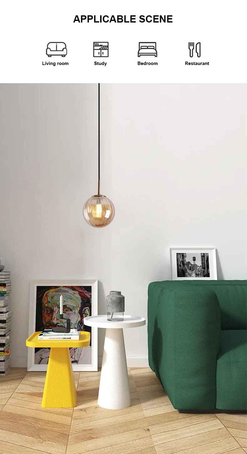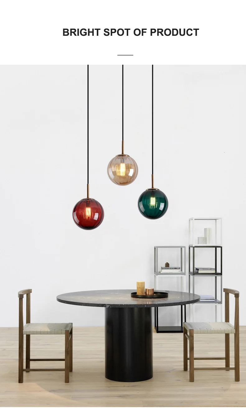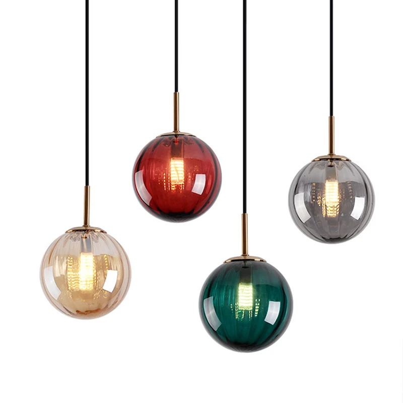Colorful Elegance Nordic Glass Ball Pendant Lights for Bedroom, Study, and Living Room Decor