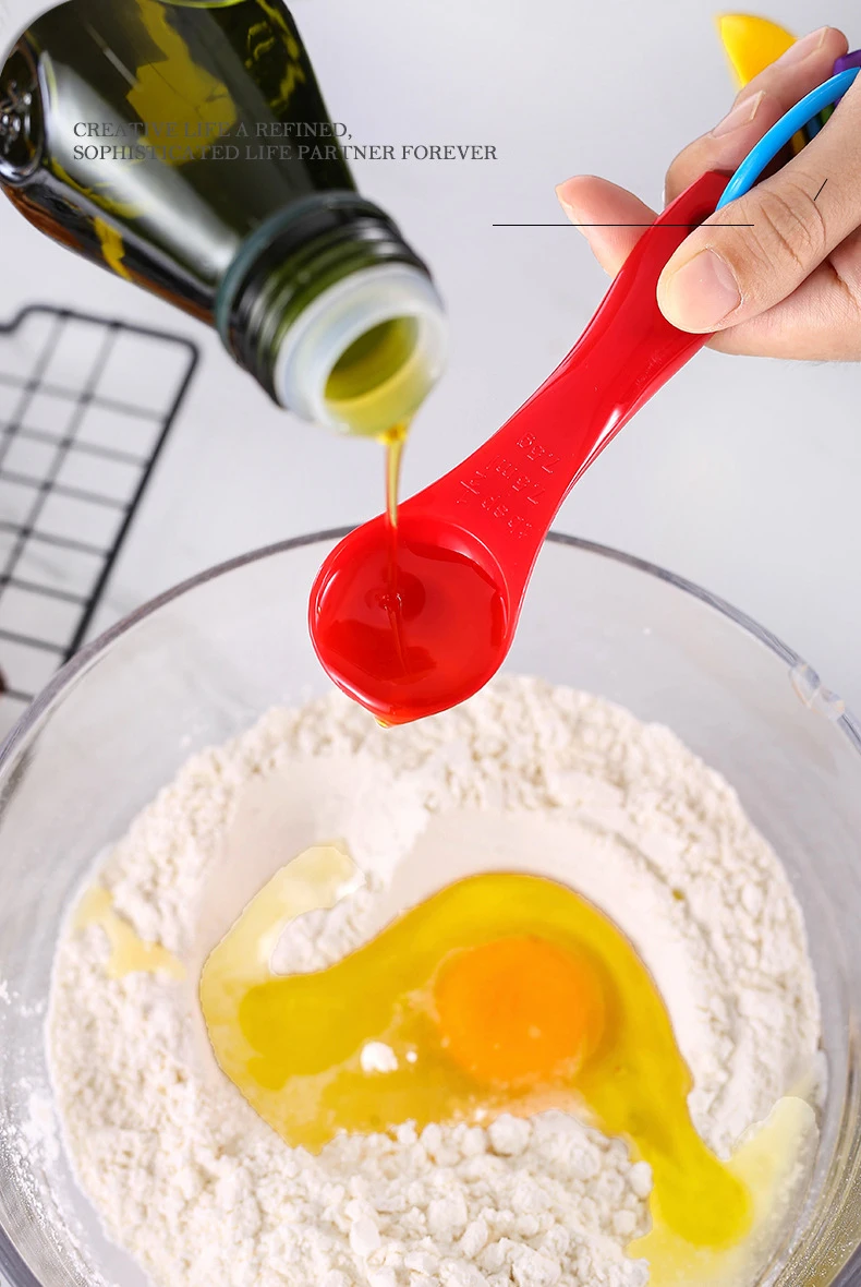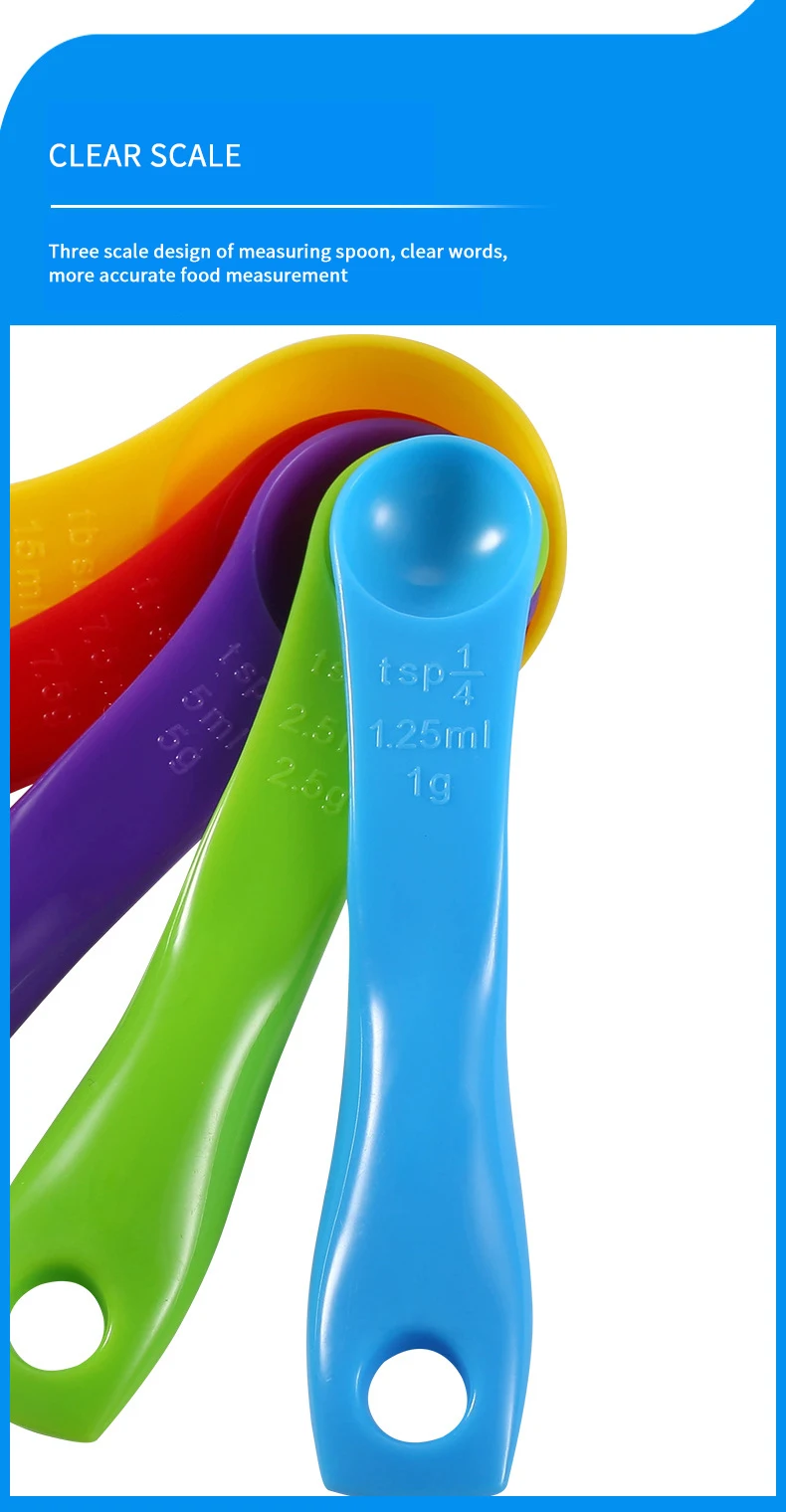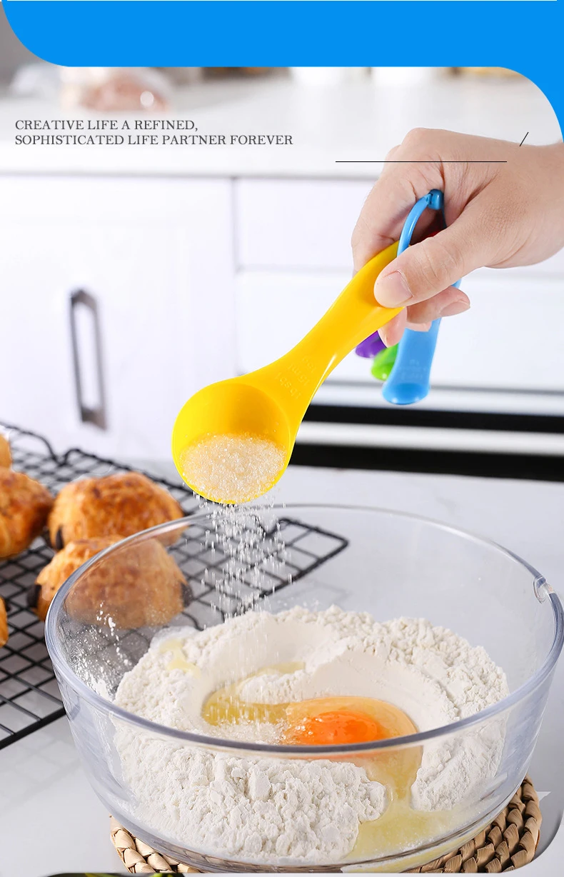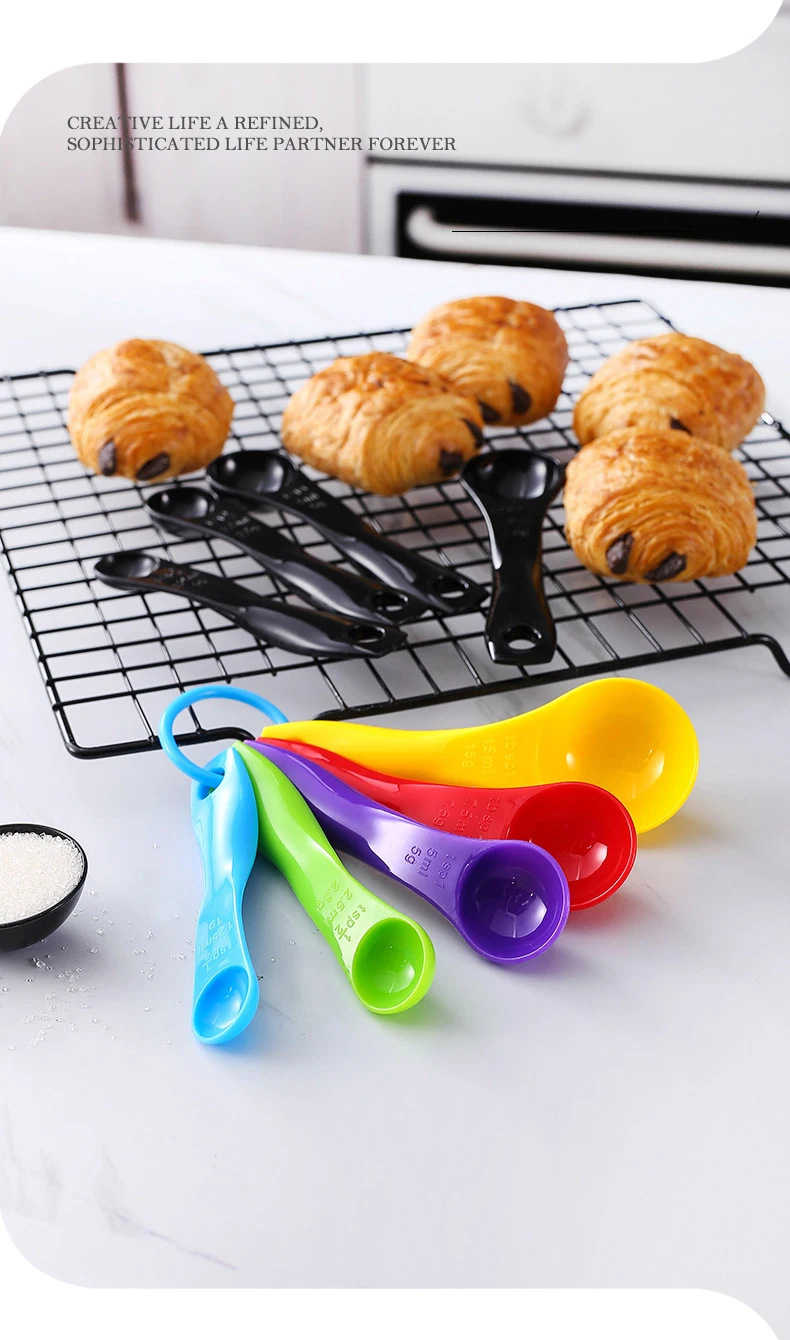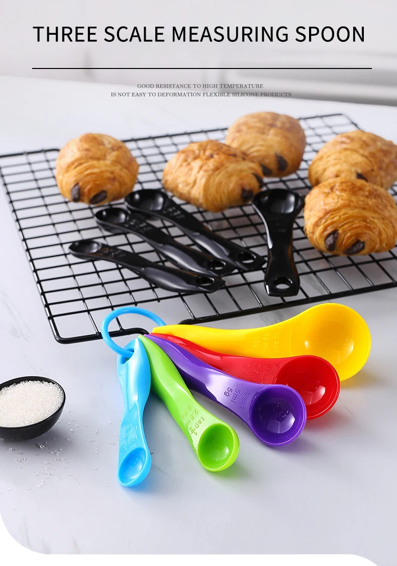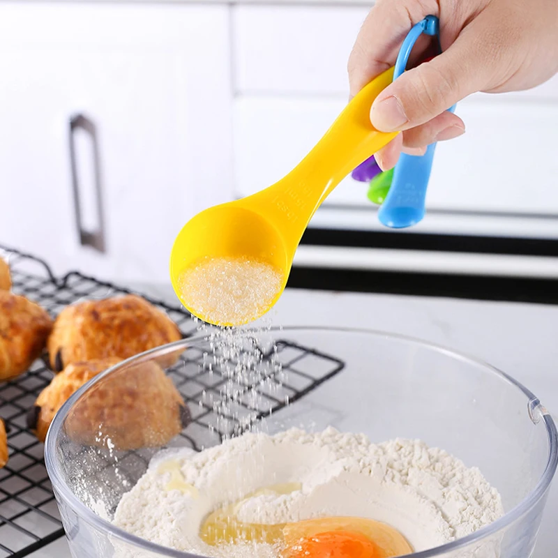 Colorful Set of Plastic Measuring Spoons for Baking and Cooking