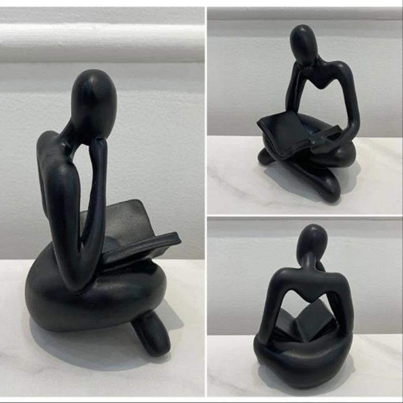 Contemplative Intellect, Modern Thinker Reading Book Statue – Enhancing Home and Office Spaces