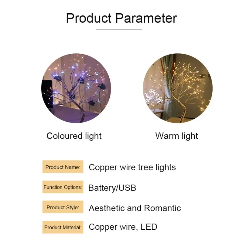 • Creative Lighting :The unique tree copper wire design adds a touch of creativity to your decor, making it a conversation starter.