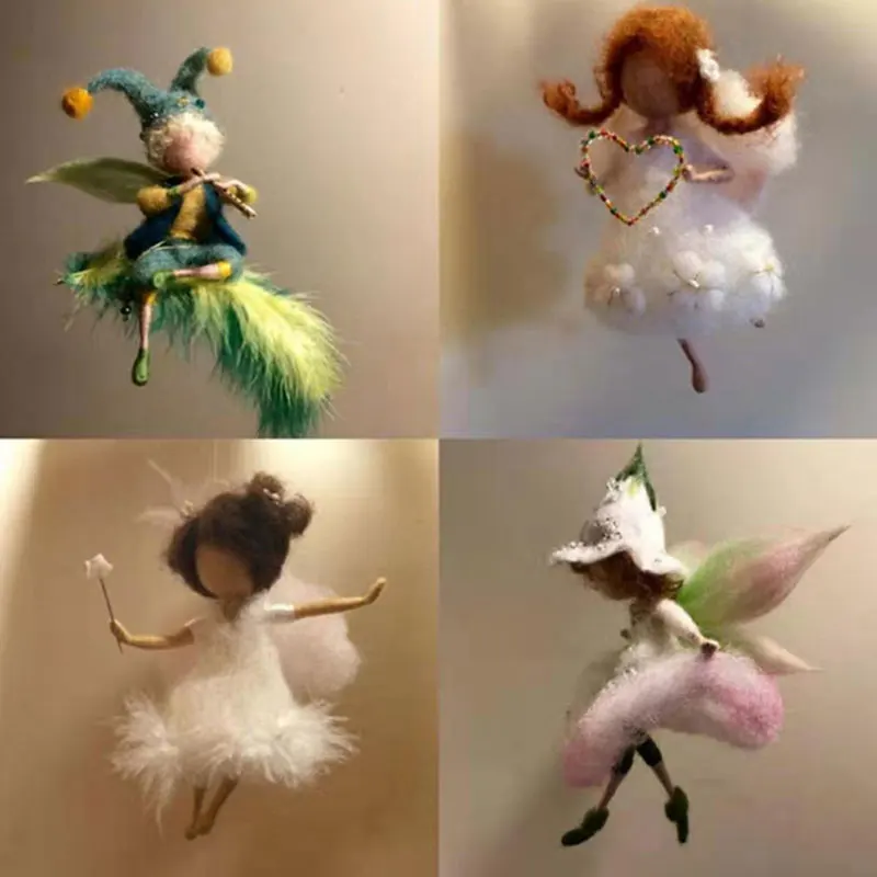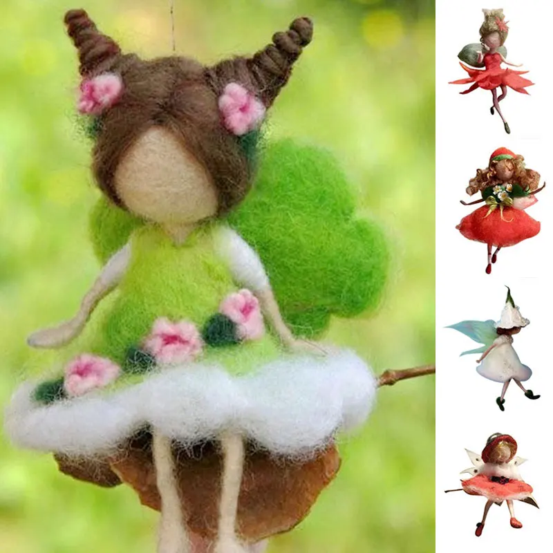 Cute Fairy Dolls Wool Felting Craft DIY Material And Instructions Kit Set Needle Felt Animal Poke Set Girls Gift Hanging Decoration