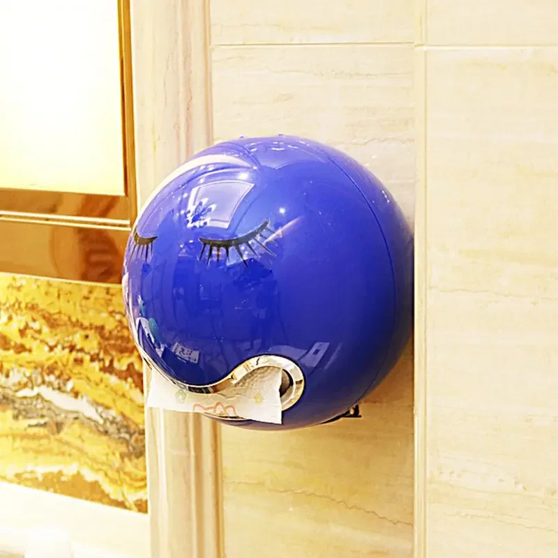 -Cute Face Ball Shaped Paper Holder Toilet Bathroom Roll Paper Box Holder