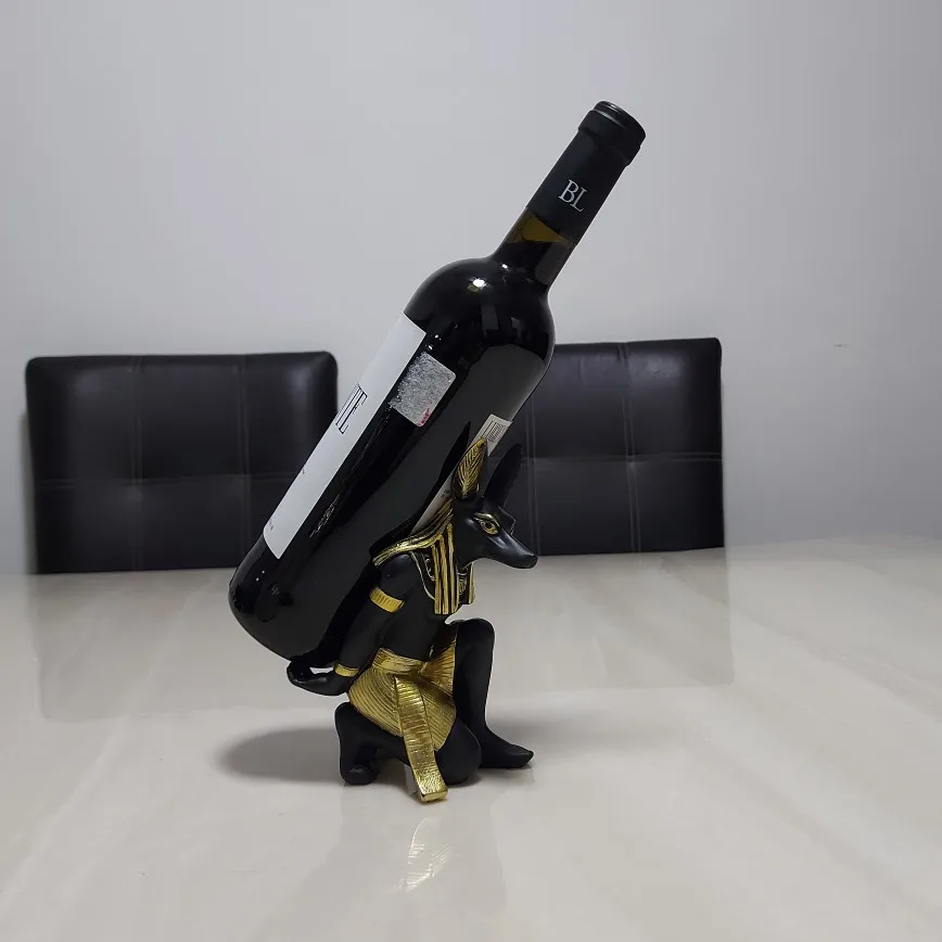 Divine Guardian: Resin Anubis Wine Rack for Unique Home Decor