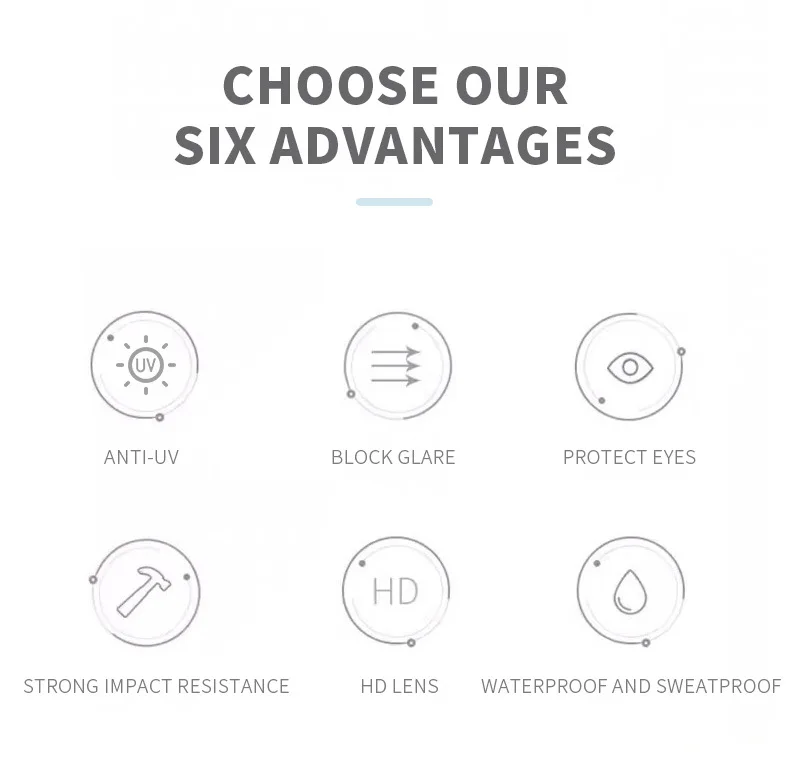 1.Made of high quality Polycarbonate. Anti-fog, shutter-proof, impact-resistant and high transmittance.