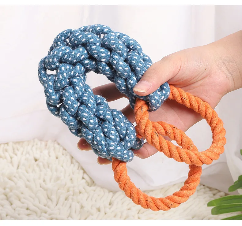 Double-Ring Cotton Knot Toy, Durable Braided Bone Rope for Pet Dental Health