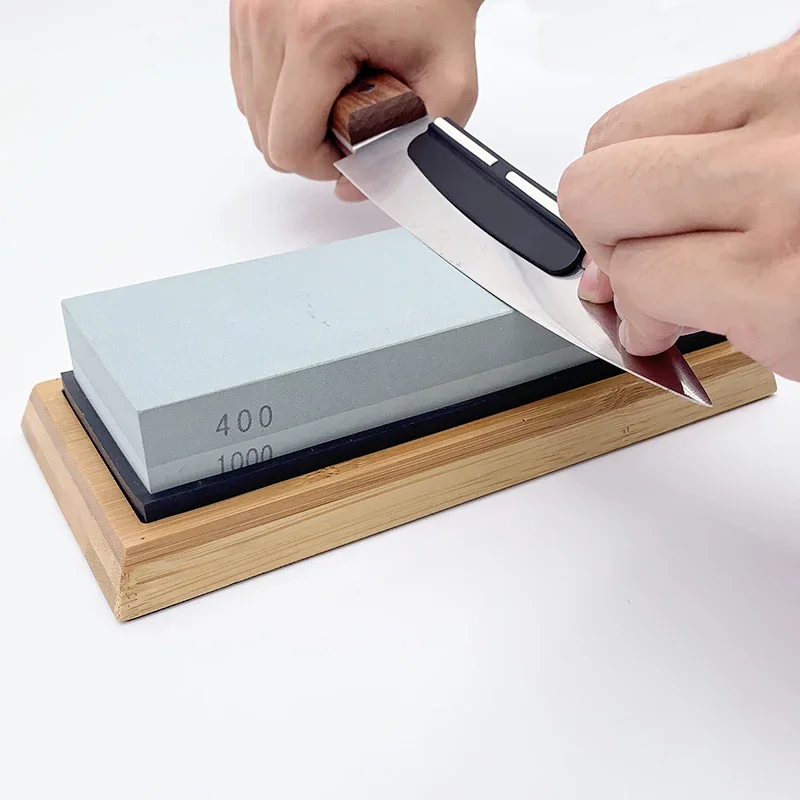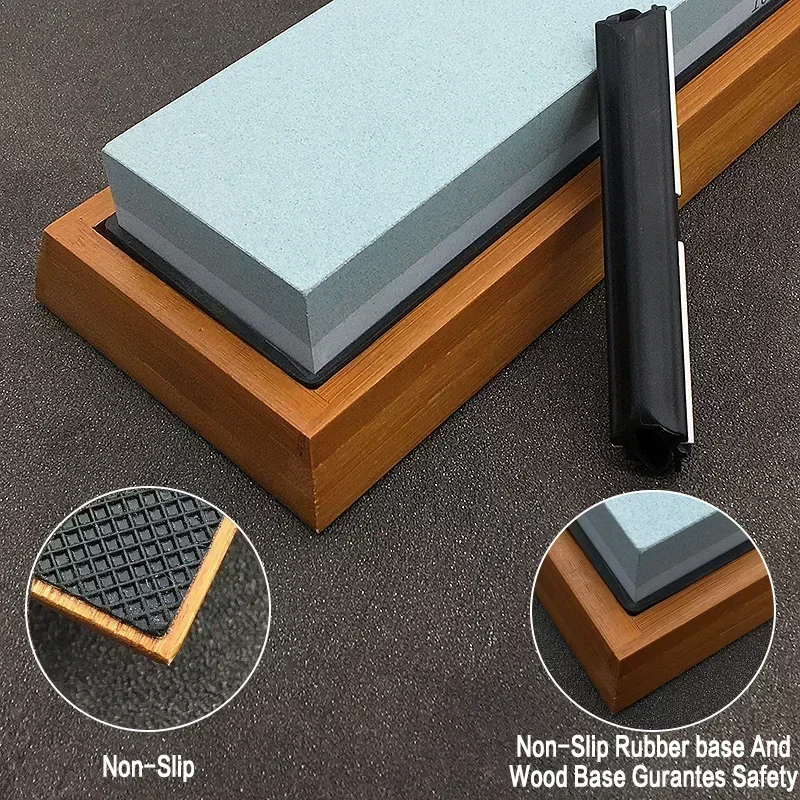 Double-Sided Sharpening Stone with Base Angle Guide for Knives