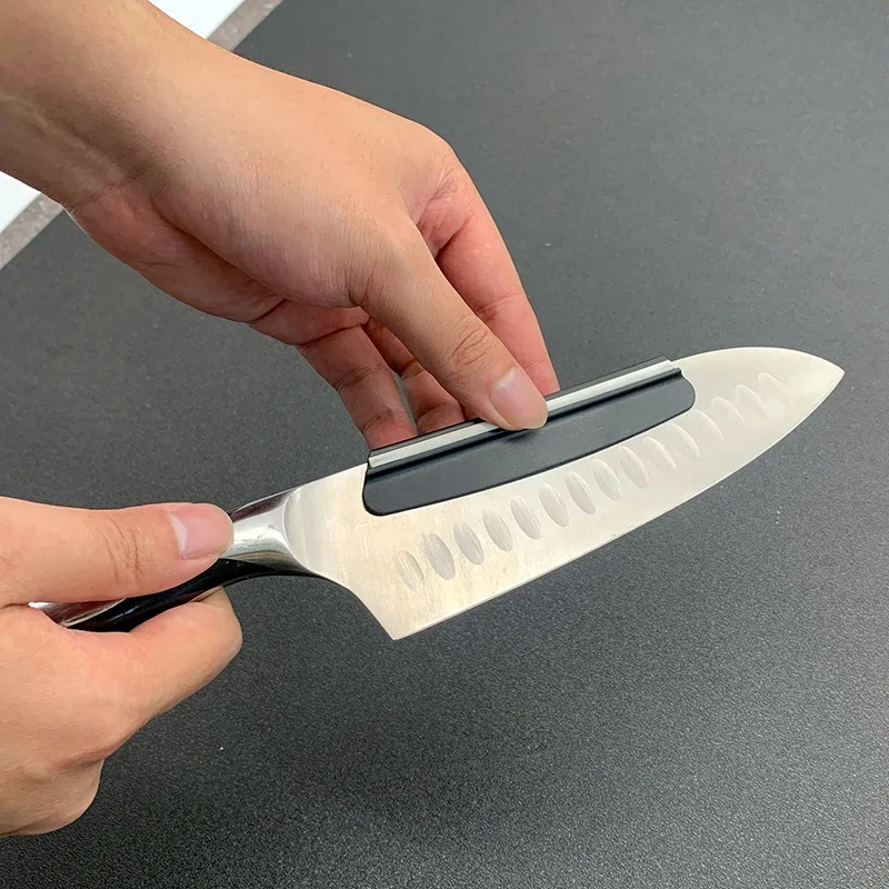 Step 2: Fine grinding, a necessary step to eliminate burrs of the edge.Use more gentle pressure,repeat step 1, and repair the edge until smoothly and keenly. General speaking, use it once a week to keep yourblade sharp.