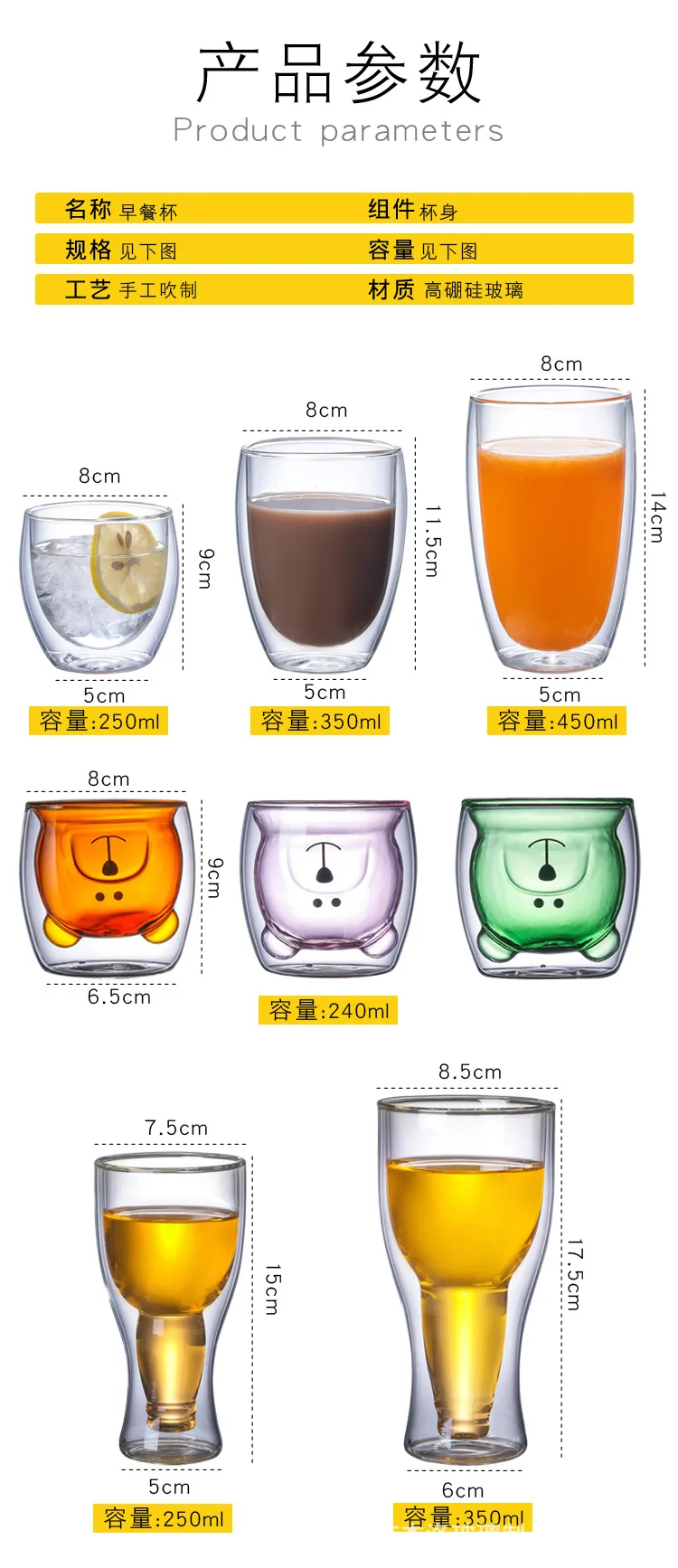 Double Wall Glass Mug Heat Resistant Insulated Tea Coffee Cup