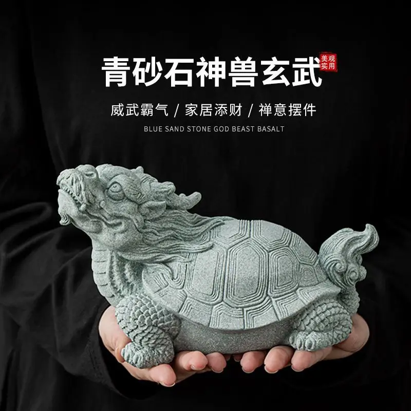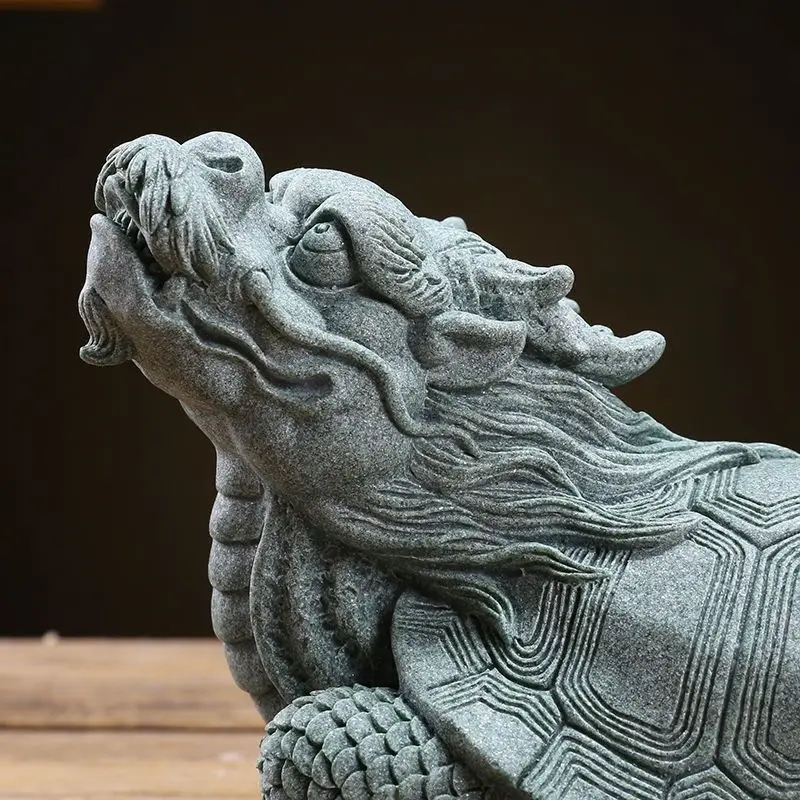Dragon Turtle Harmony: Chinese Green Sandstone Ornaments for Serene Spaces