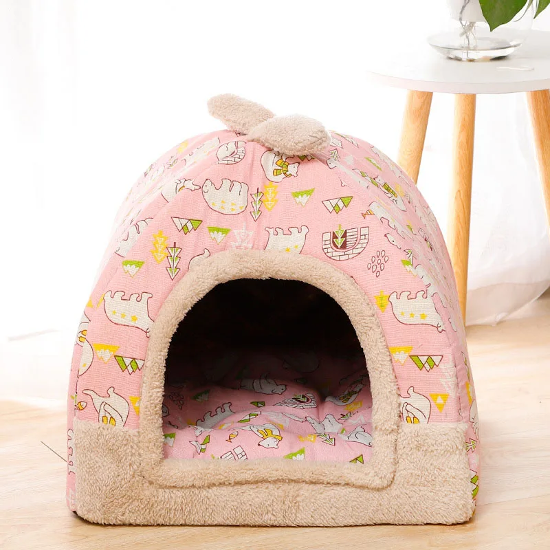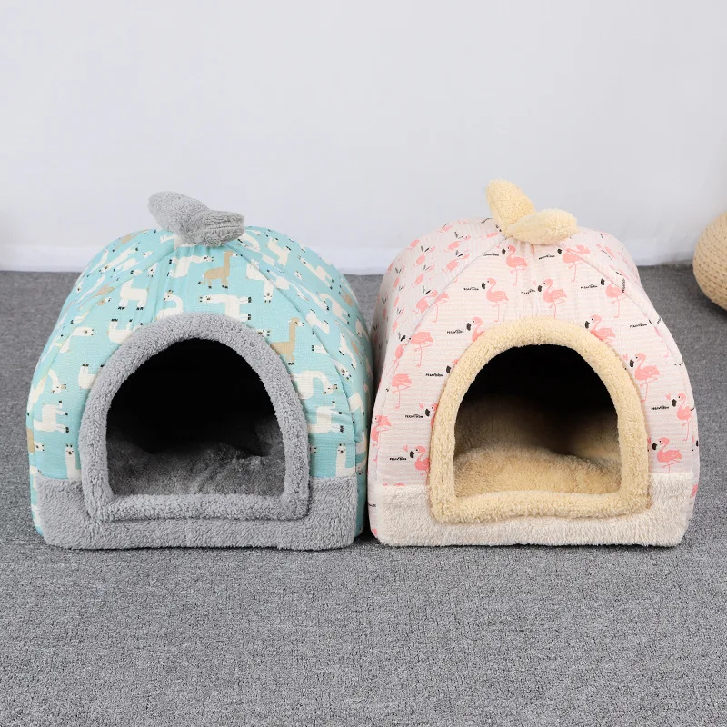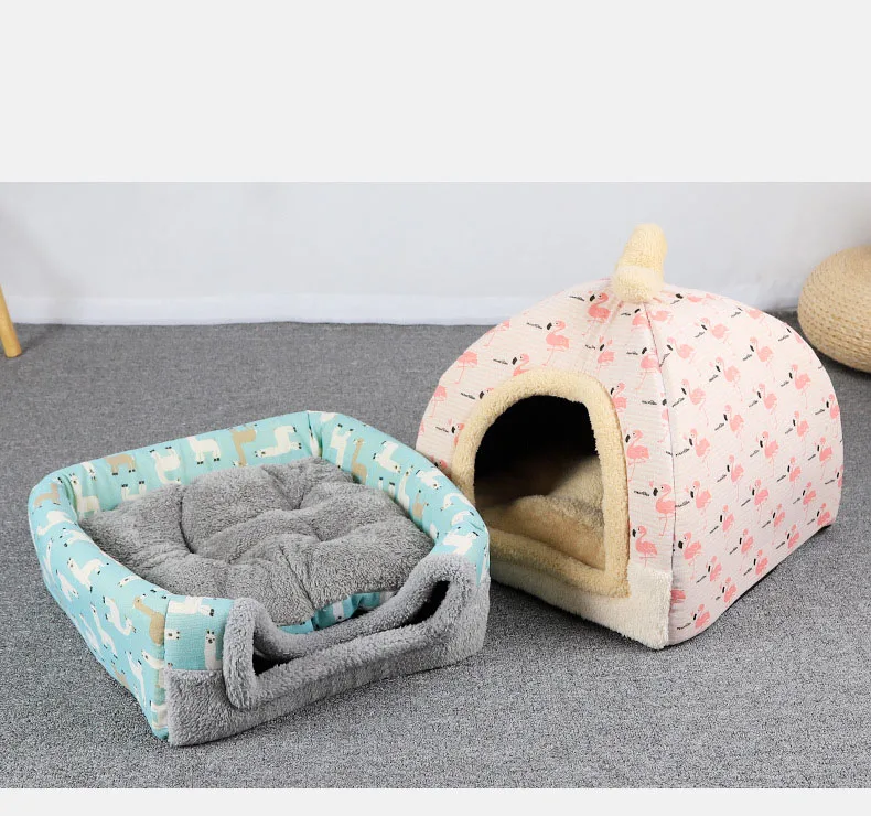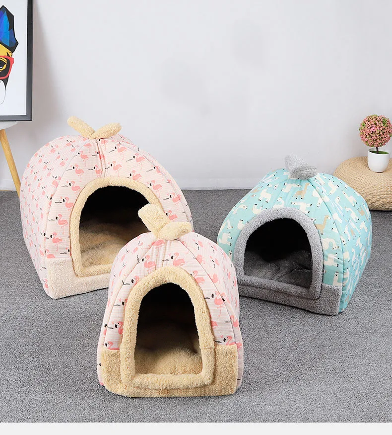 Dual-Use Closed Dog Bed and Plush Bed Cushion – Cozy Retreat for Small Dogs, Providing Comfort and Style in One