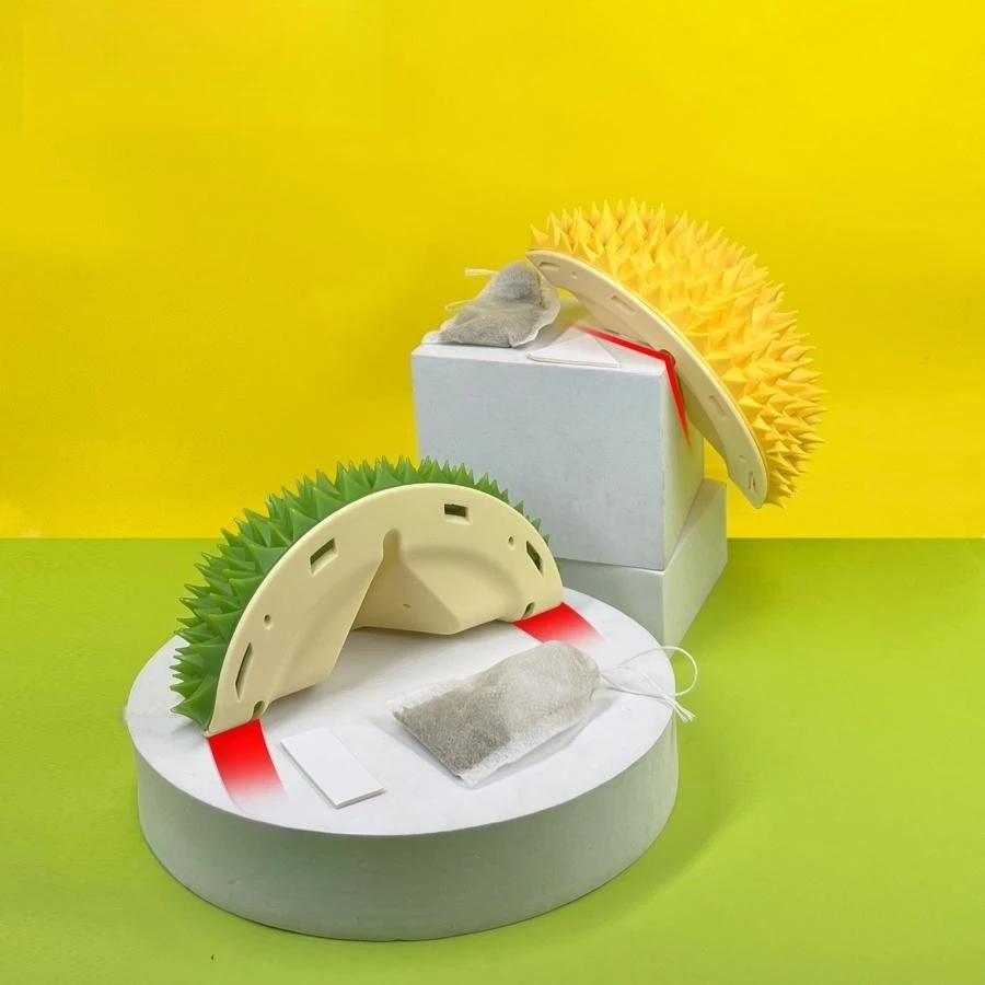 Durian-Shaped Multi-Functional Pet Toy, Hair Remover Brush and Catnip Toy Combo
