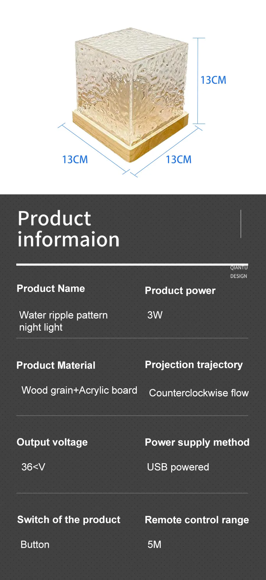 【Using Special 3D Technology】 Water ripple driven by internal rotating light plate. The refraction of the light through the crystal lamp is bright and colorful, very stylish.