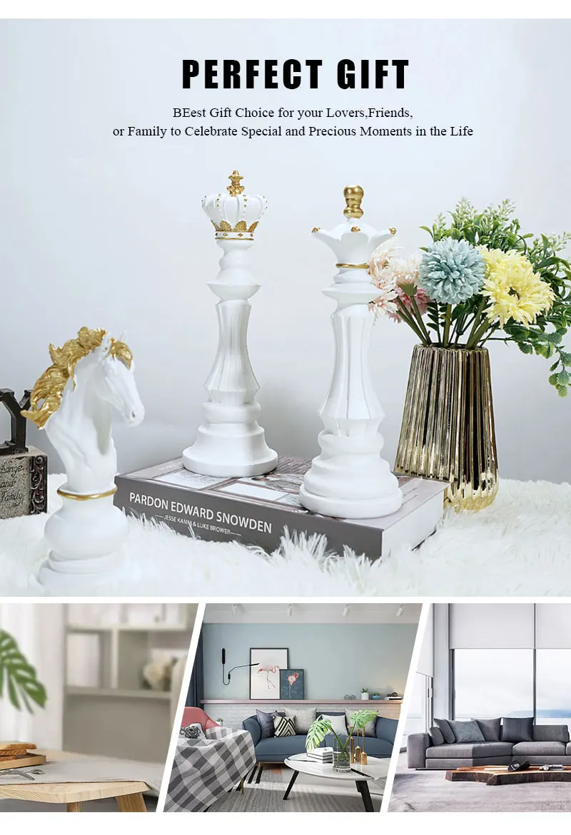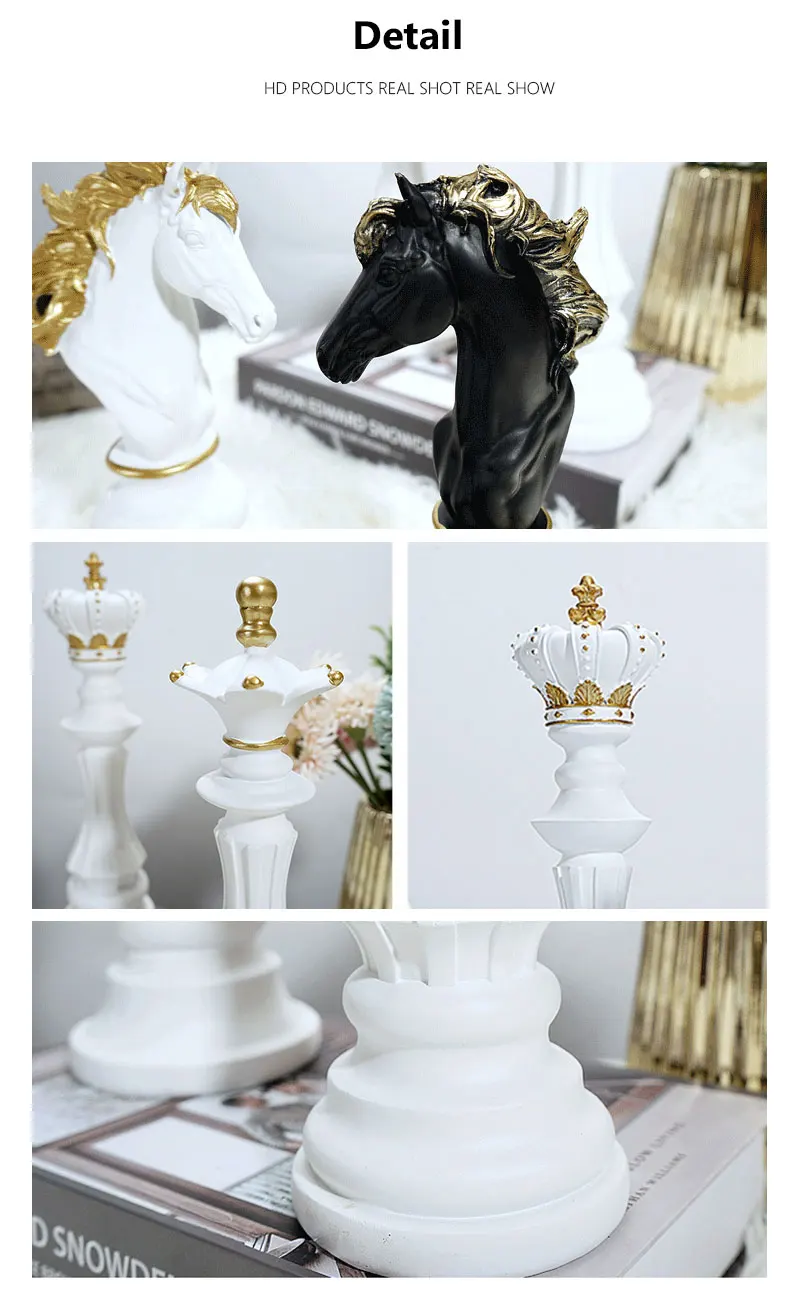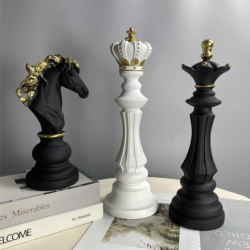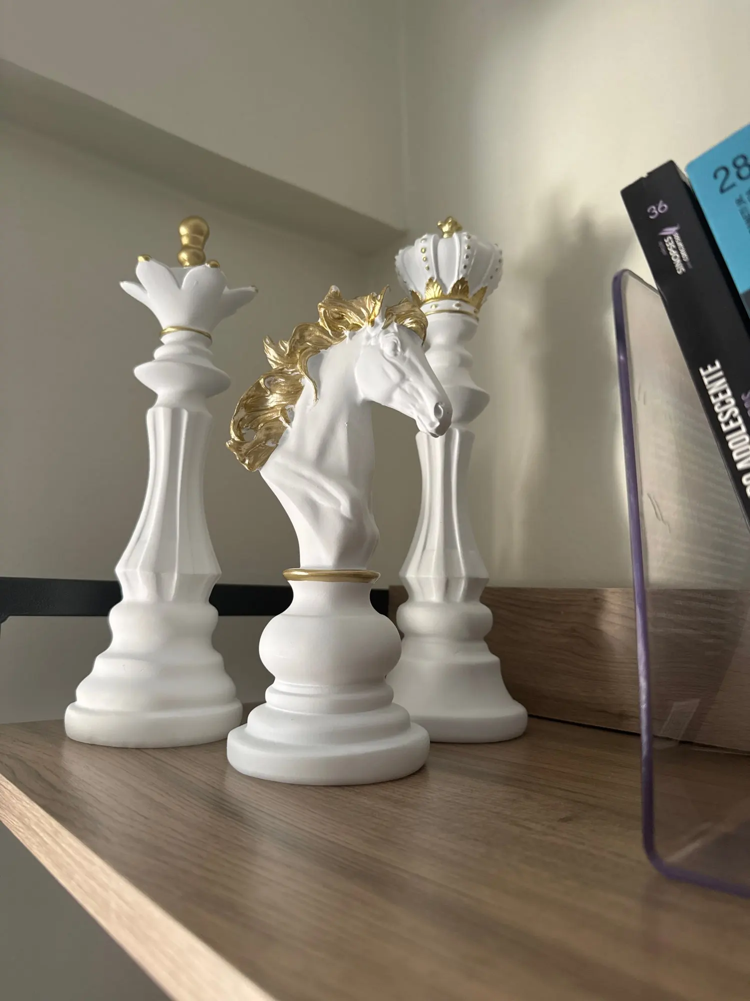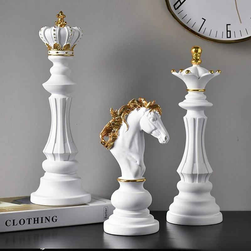 Elegant Chess Resin Figurines – King, Queen, Knight Decor Set