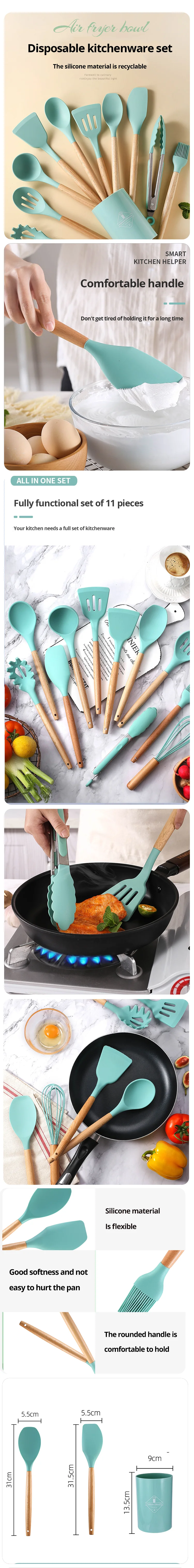 • Eco-friendly :Made of wooden handles and silicone, these utensils are eco-friendly and safe for use in the kitchen.