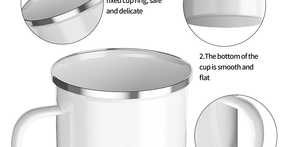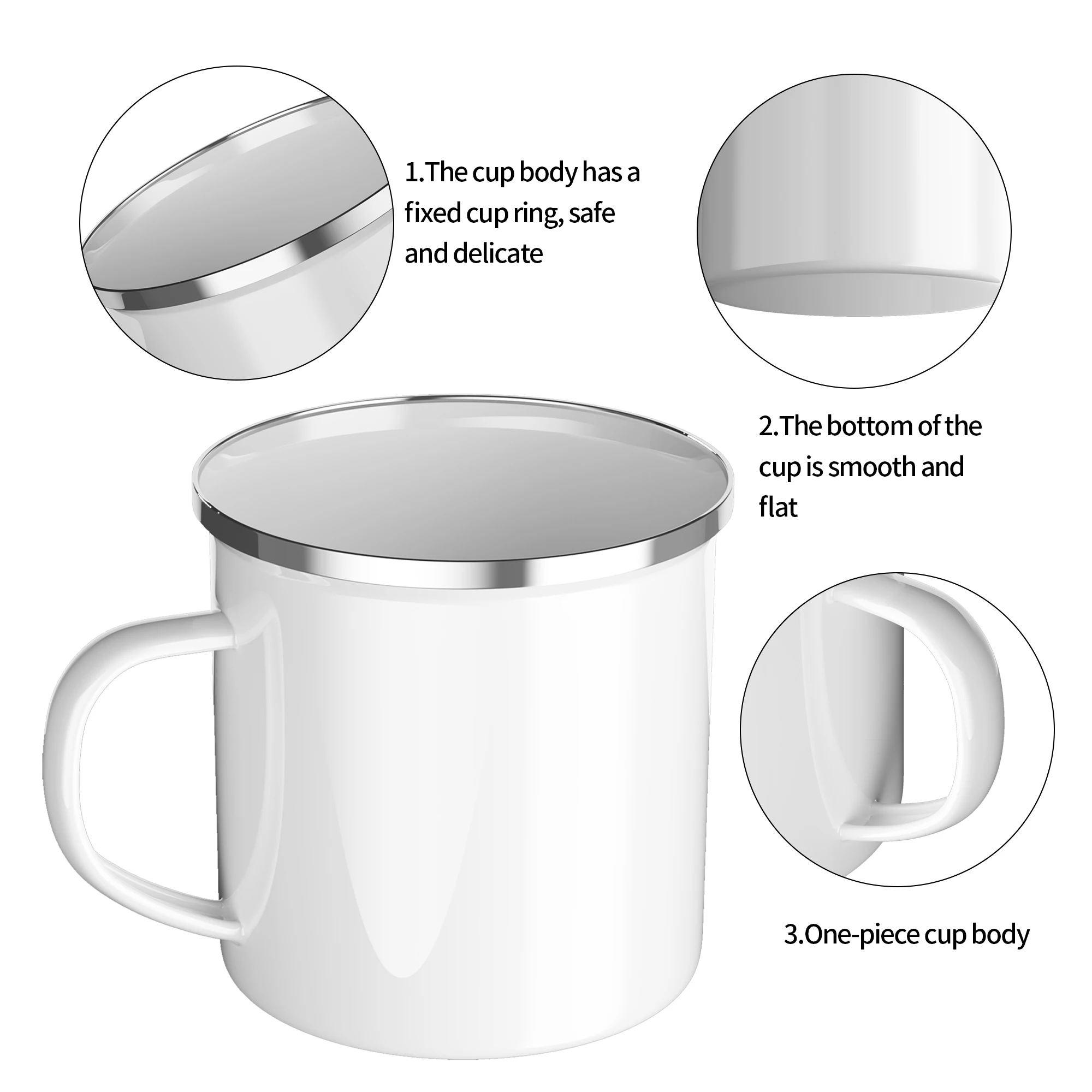 2.【CRAFTED】Fine and bright enamel coating prevent cup rusting, Rolled black rim with no burrs, Wide U-handle for grasp comfortably and hang easily, Strong construction with proper weight