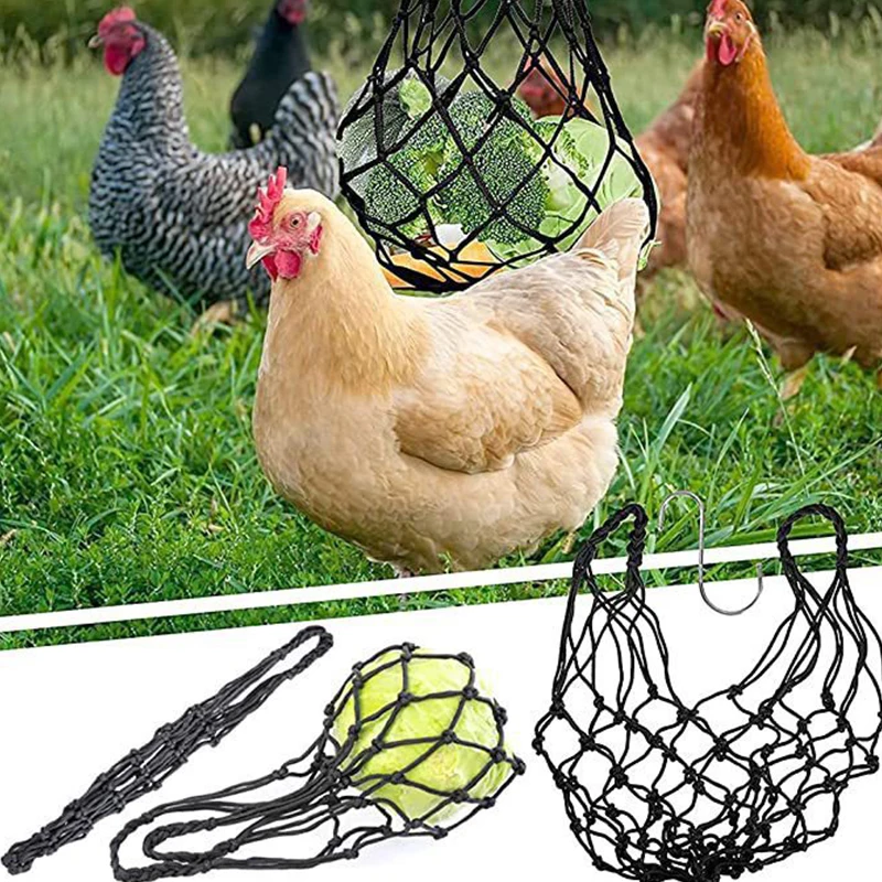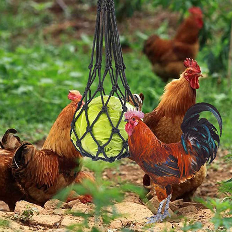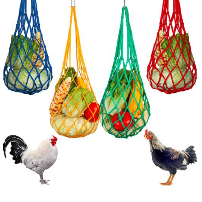 Chicken Vegetable Net Bag Poultry Fruit Holder Chicken Cabbage Feeder Treat Feeding Tool For Hen Goose Large Birds Chicken House