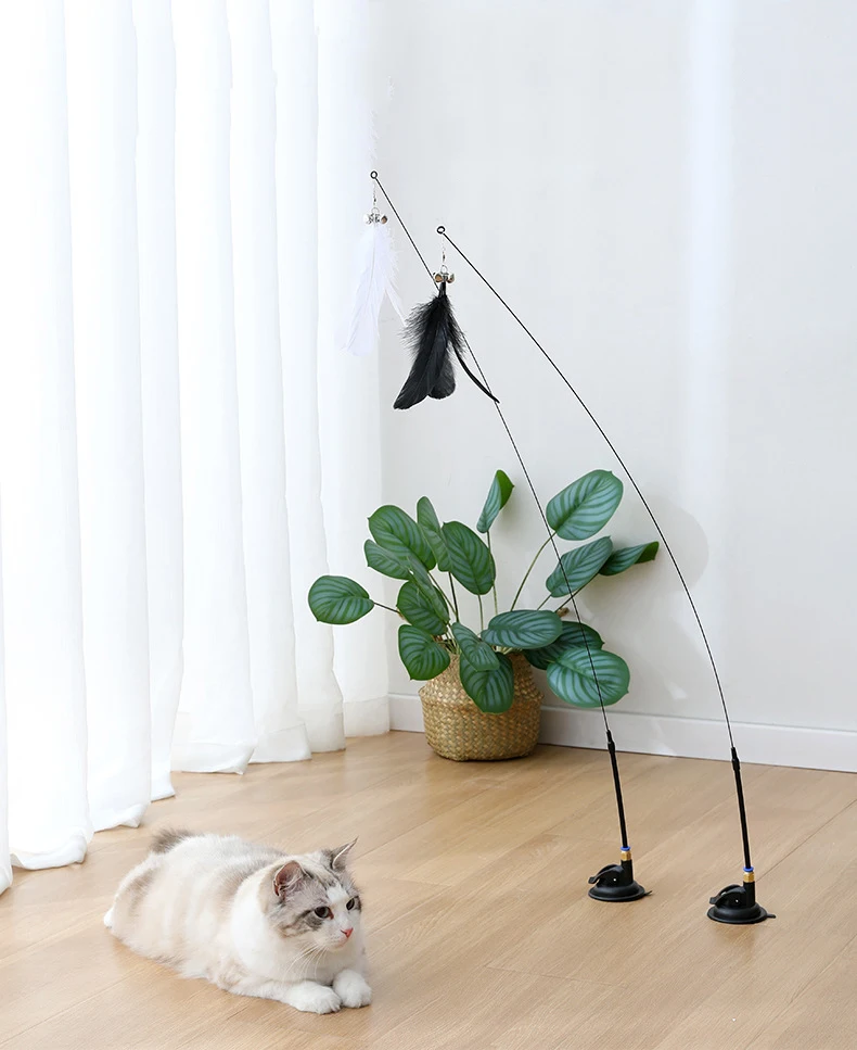 Suction Cup Playtime, Teasing Rod with Replacement Head for Cats, Bring the Birds to Your Kitty’s Paws