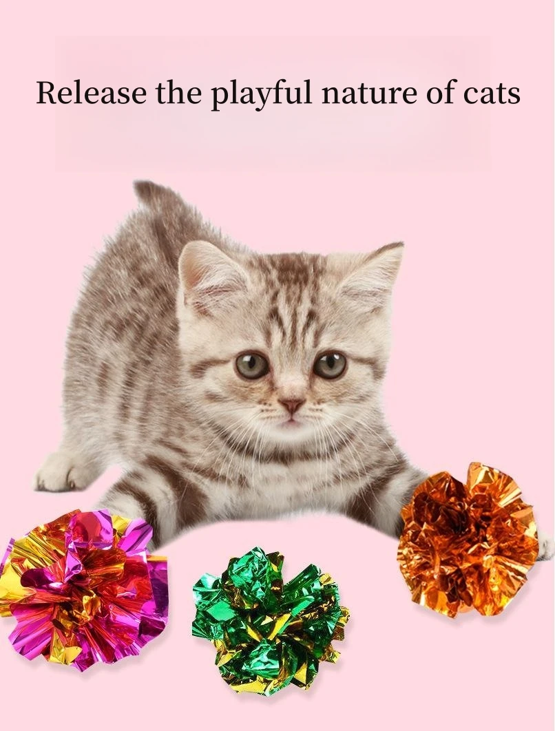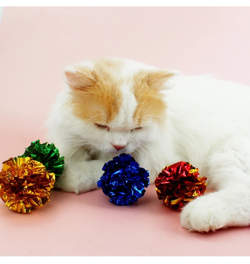 Ringing Paper Colorful Ball Cat Toy Tin Soundmaking Festival Decoration Playing Interactive Products Supplies Color Random
