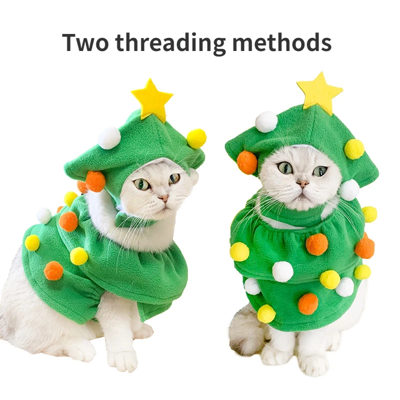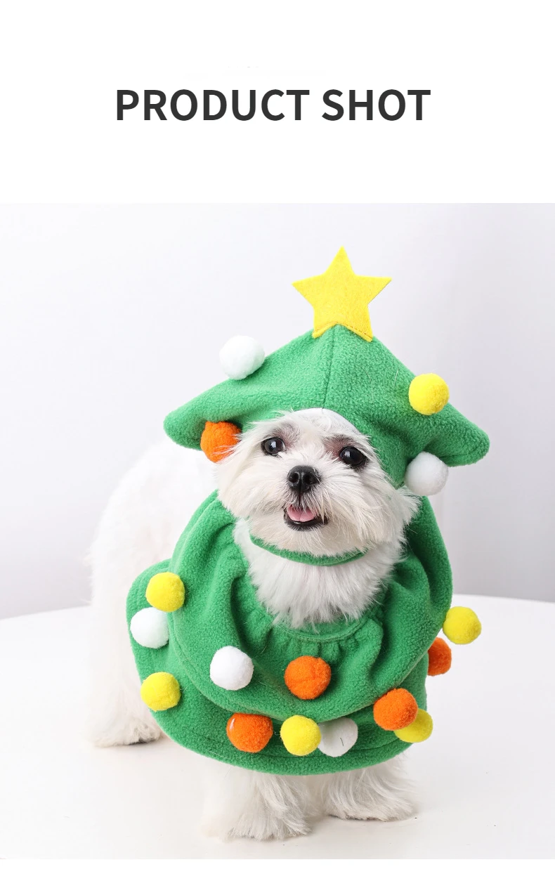 Pet Christmas Tree Clothes Transformation Clothes Funny Cat and Dog Clothes Green Soft Plush Warm Belt Star Plush Ball Fun