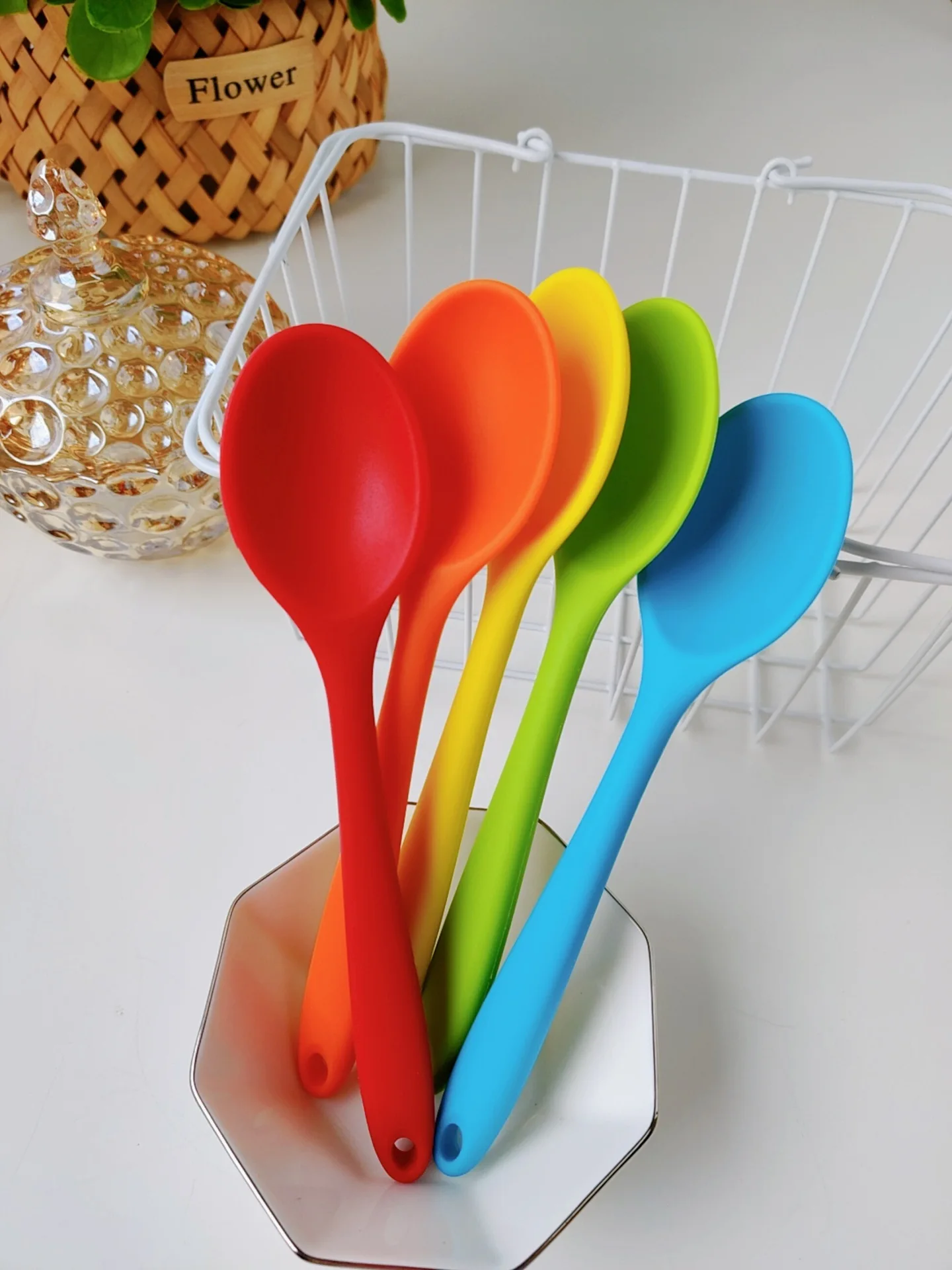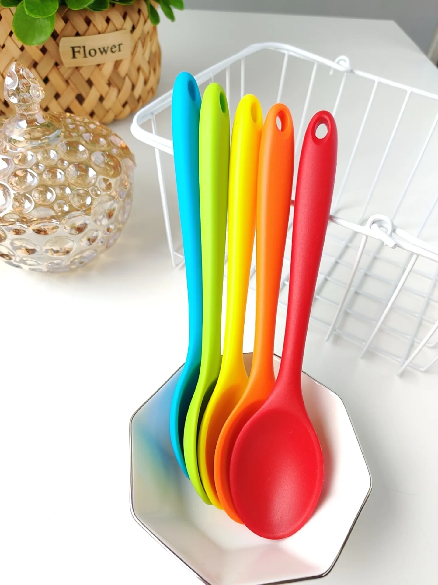 7Color 210mm Universal Flexible Heat Resistant Silicone Spoon Scraper Spatula Ice Cream Cake for Shovel Kitchen Tool Utensil