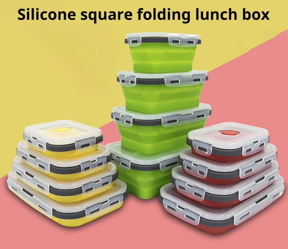 Foldable Silicone Lunch Box for Microwave and Refrigerator