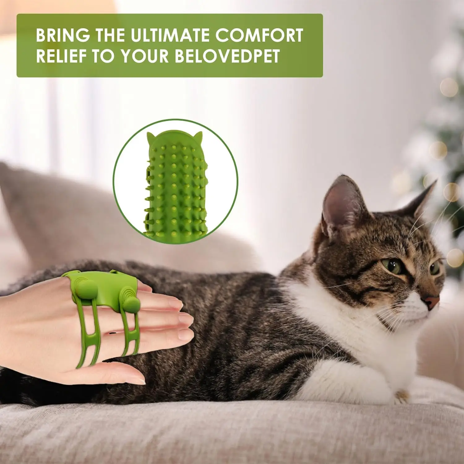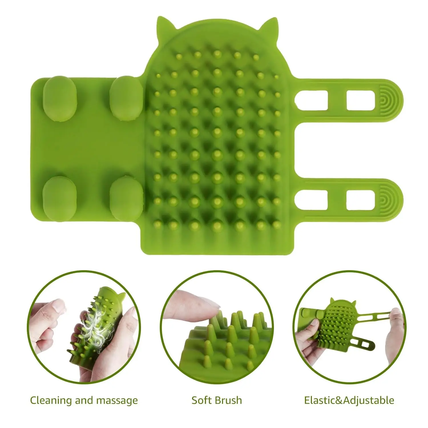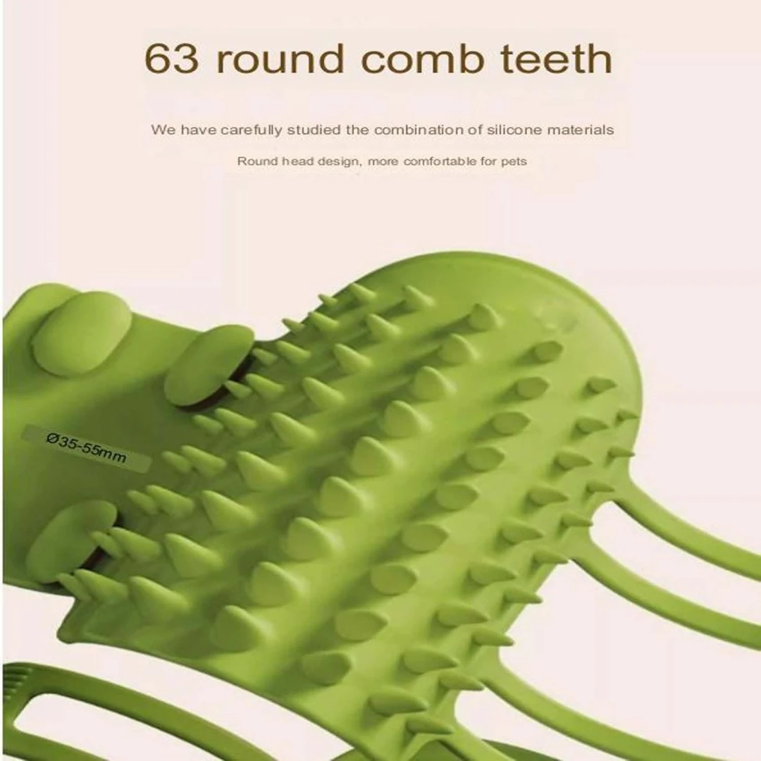 Furry Friend Flexi-Brush, Adjustable Strap Pet Massage & Tickling Brush with Gentle Round-Head Comb Teeth