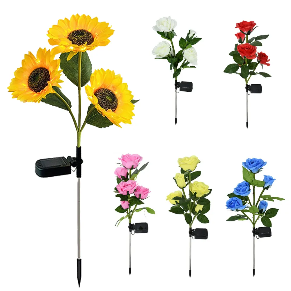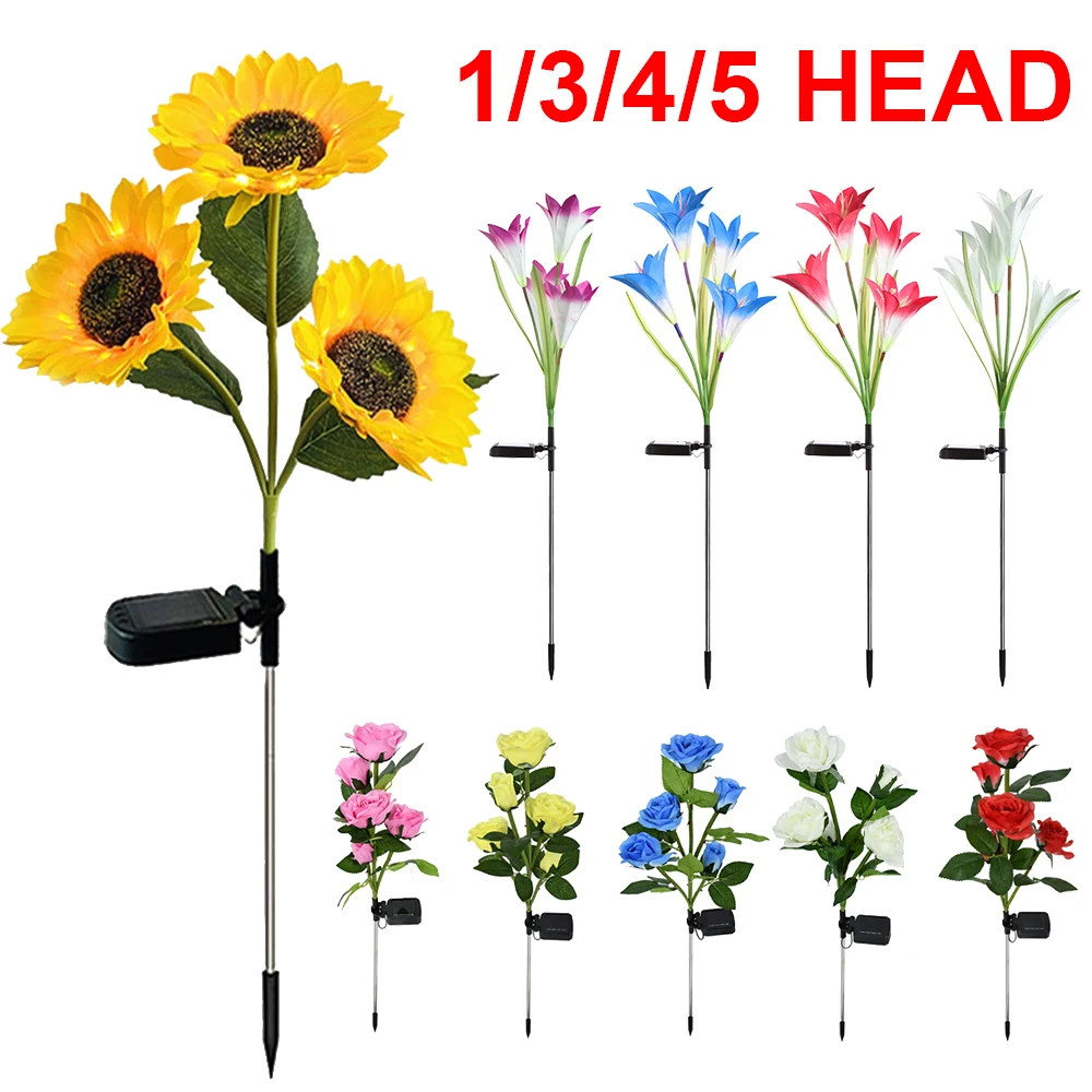 1/3/5 Head Solar Simulation Rose Lights Sunflower LED Lights Outdoor Waterproof Garden Lamp Patio Lawn Night Lamp Flower Lights Â