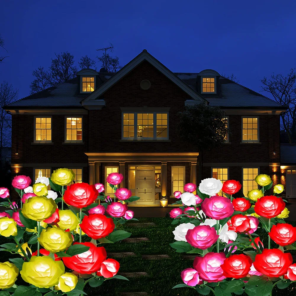 1:Our upgraded sunflower solar garden light comes with 1/3/5 petals to choose from, made of high-end silk fabric for better transparency and a more realistic appearance without fading. These waterproof solar outdoor light decorations provide a charming and romantic atmosphere, perfect for enhancing your outdoor decoration.