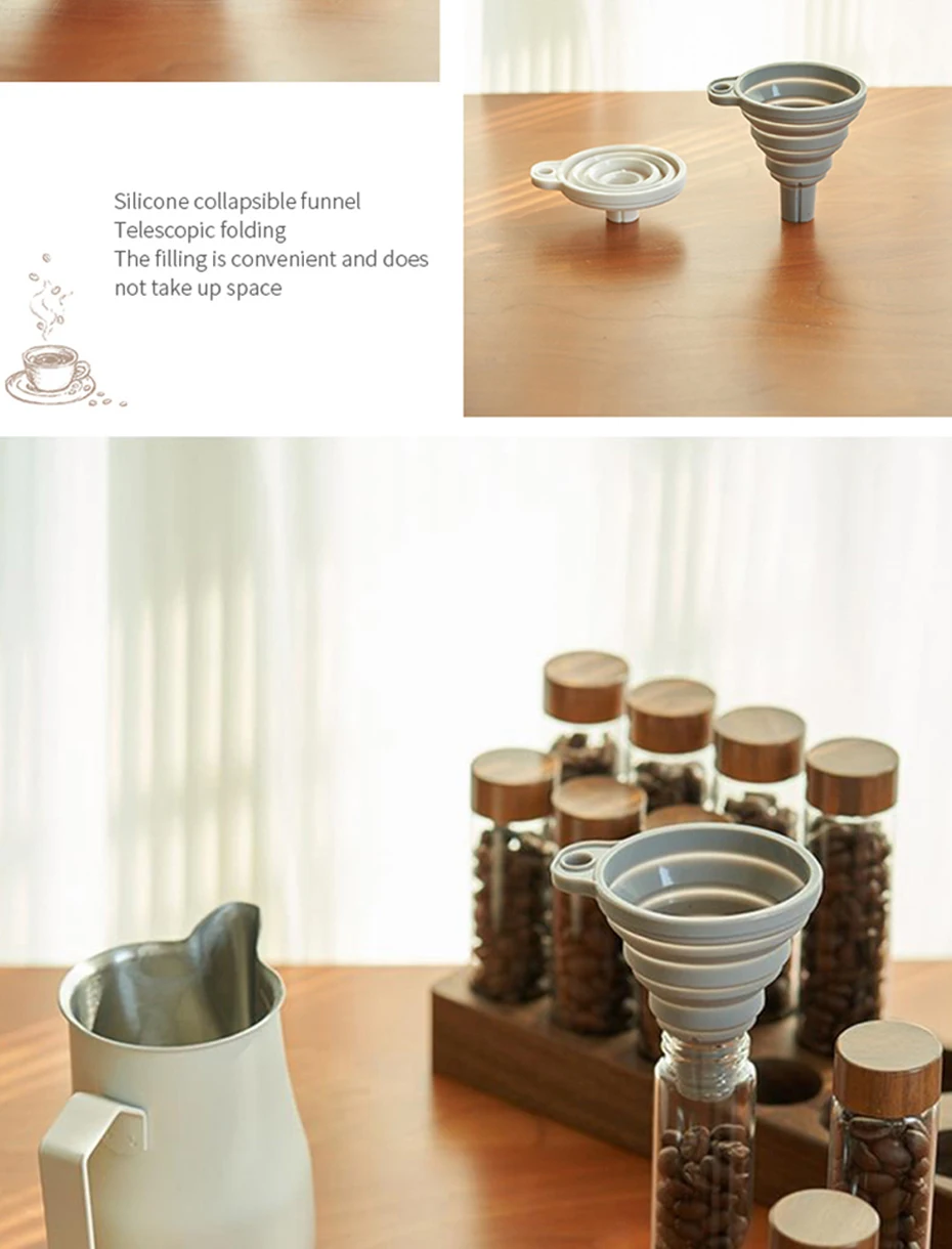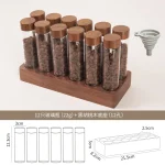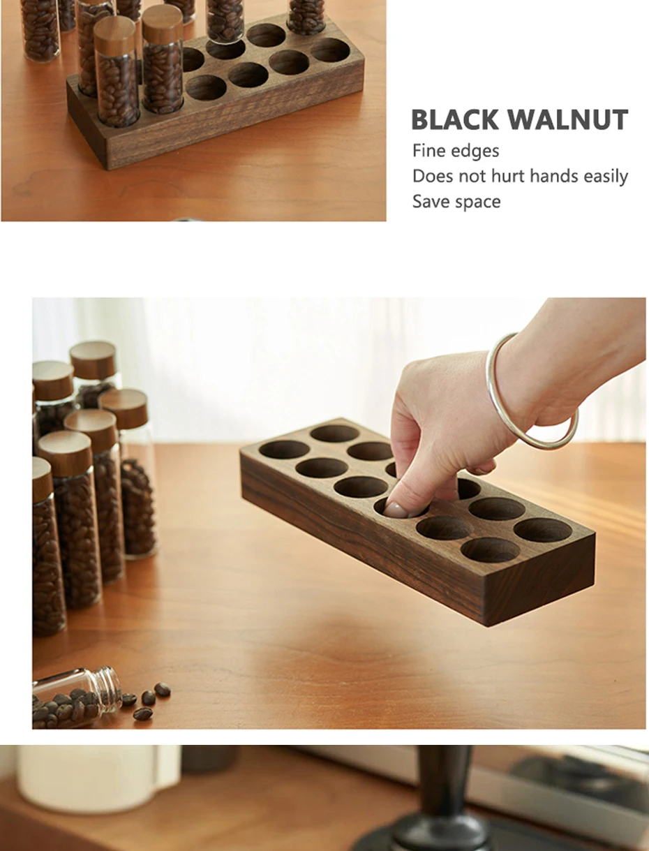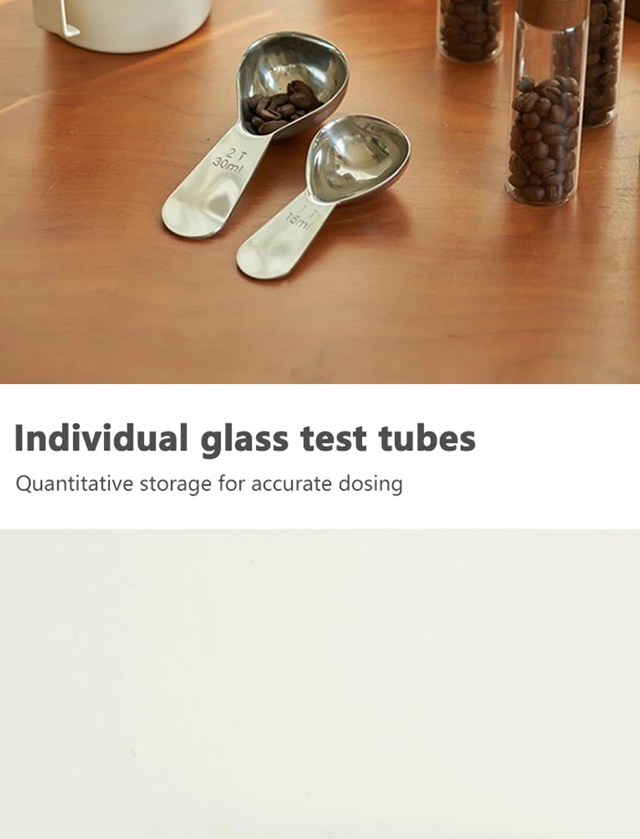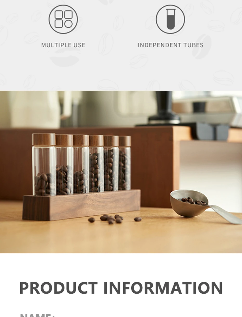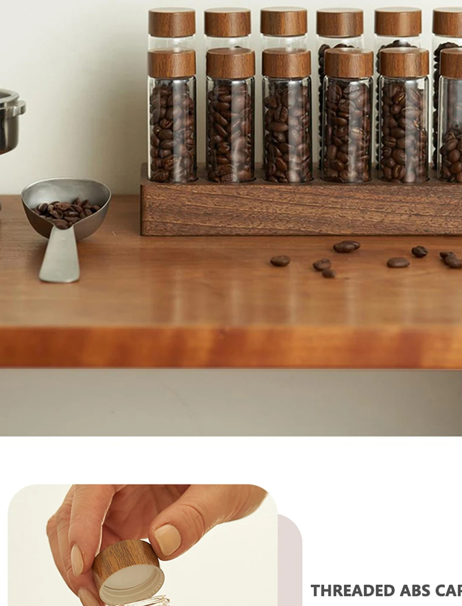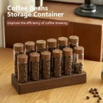 Glass Coffee Beans Storage Tubes with Walnut Rack
