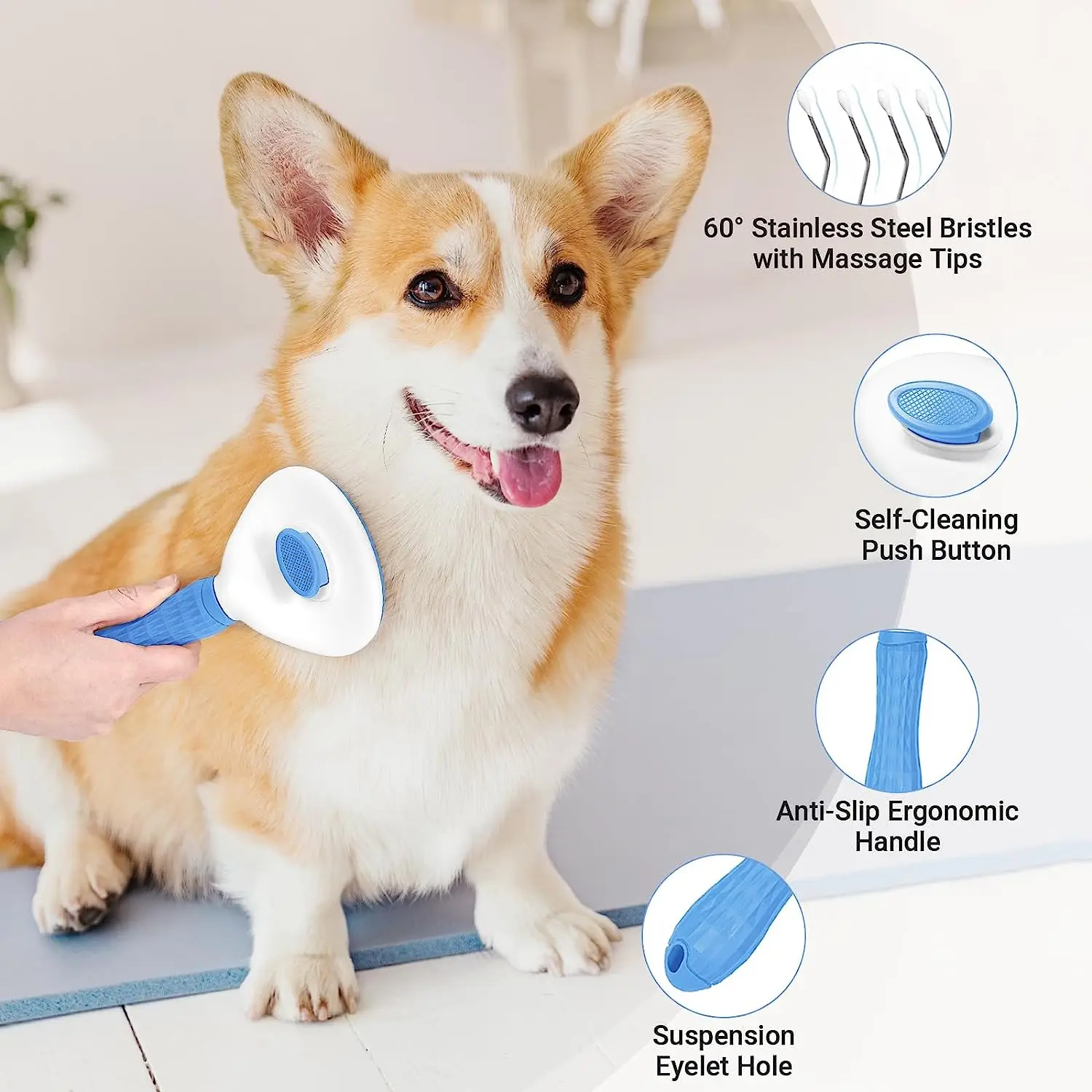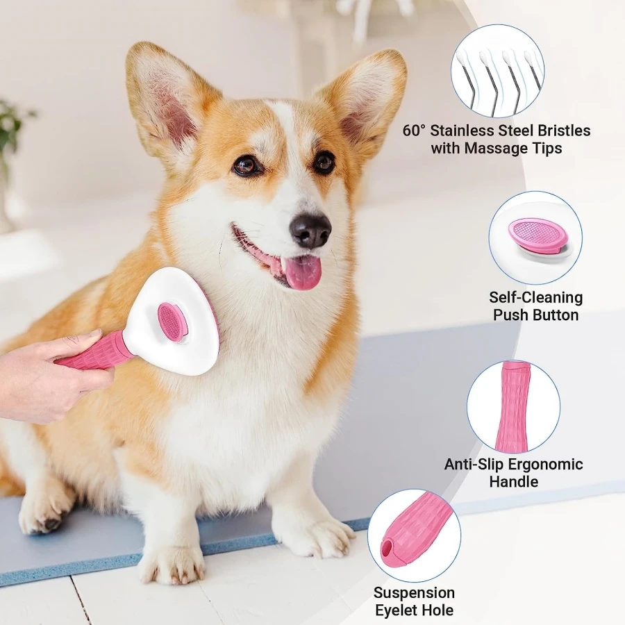 Gleam Groom, Self-Cleaning Slicker Deshedding Brush for Cats and Dogs
