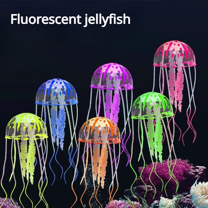 Glowing Sea Ballet, Colorful Fluorescent Jellyfish Aquarium Ornament for Mesmerizing Tank Landscaping