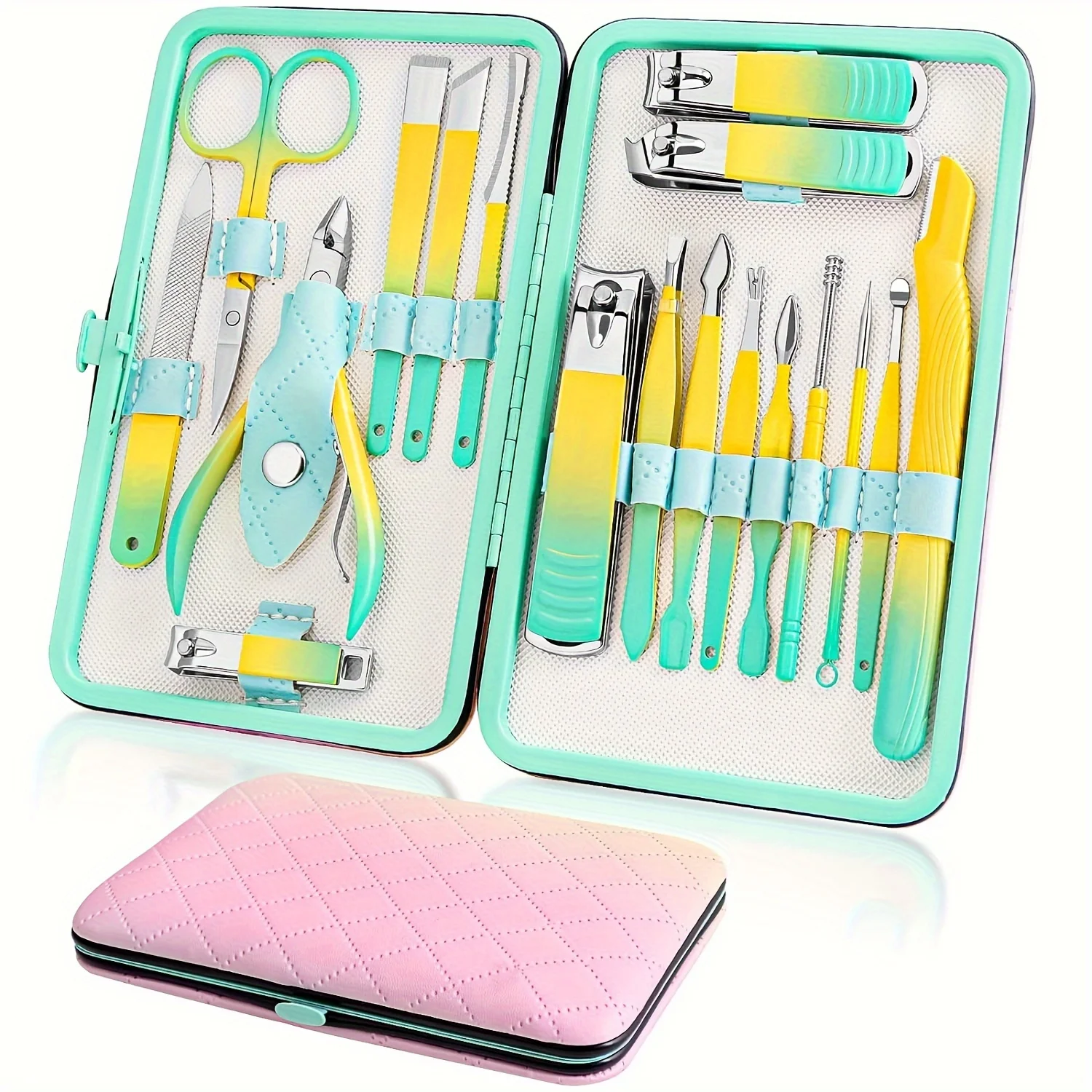 Spring Green Manicure and Pedicure Set with Portable Case