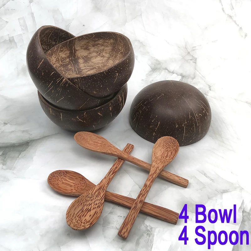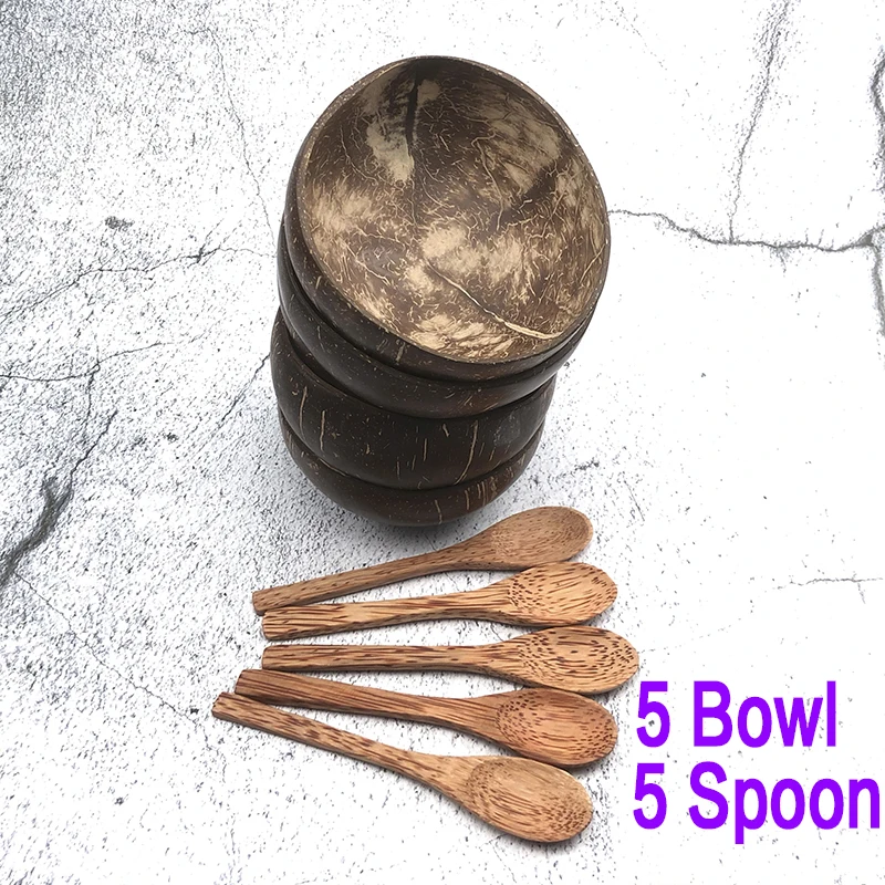 Handcrafted Coconut Wooden Bowl and Spoon for Kitchen Use