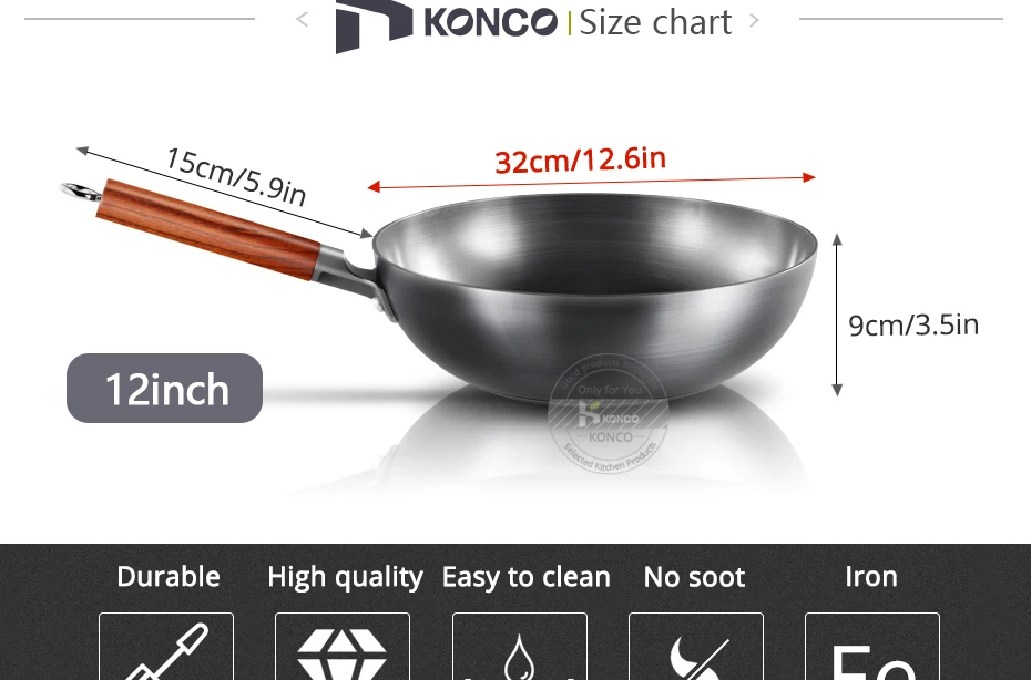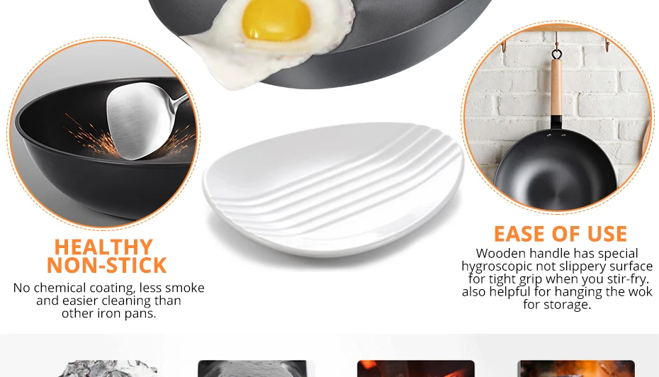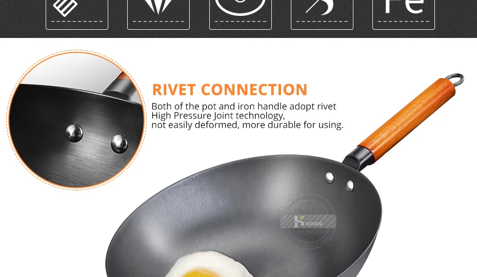 3.High temperature nitriding treatment above 600 degrees, improve the anti-rust ability and surface hardness of the pot, which is more durable.