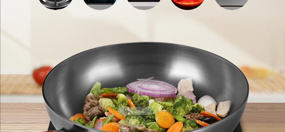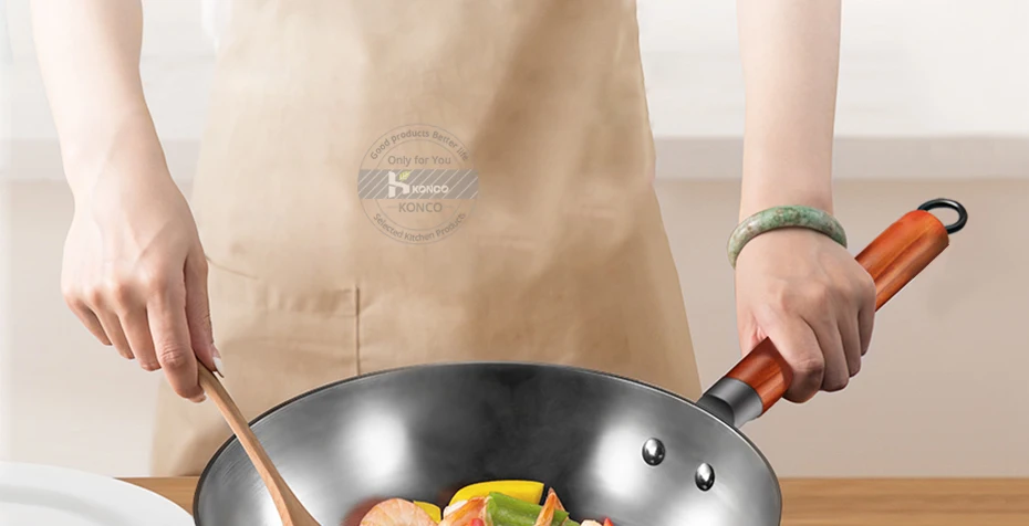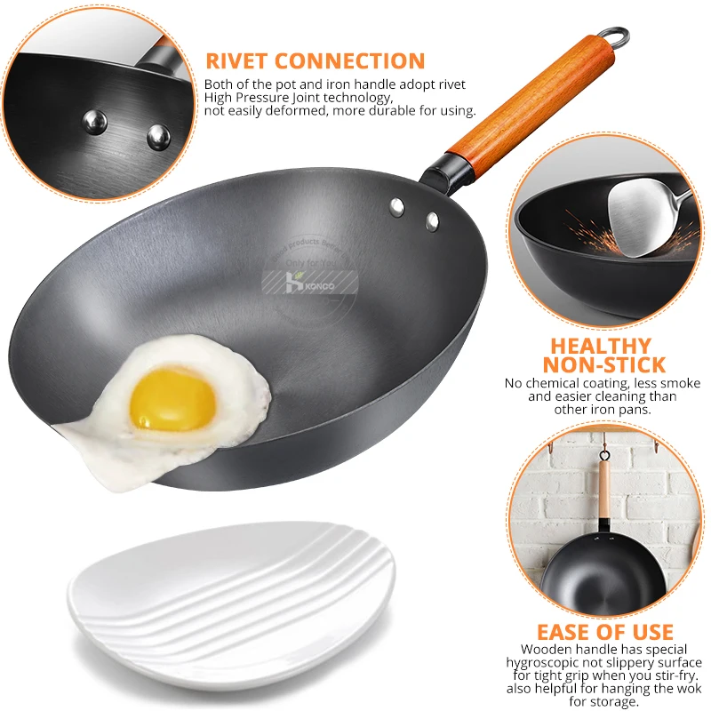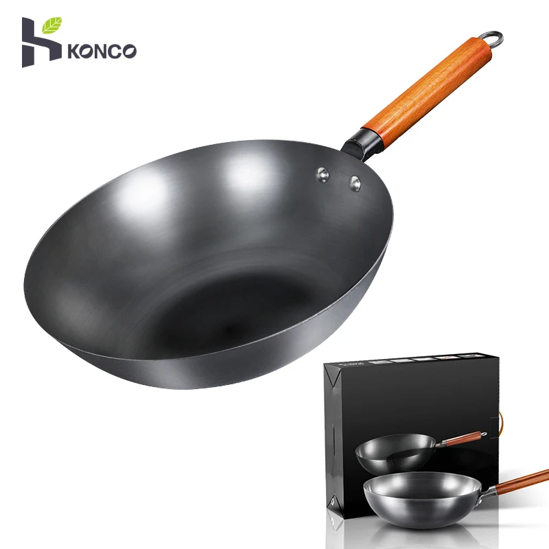 Handmade Chinese Iron Wok for Gas and Induction Cookers