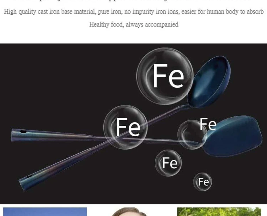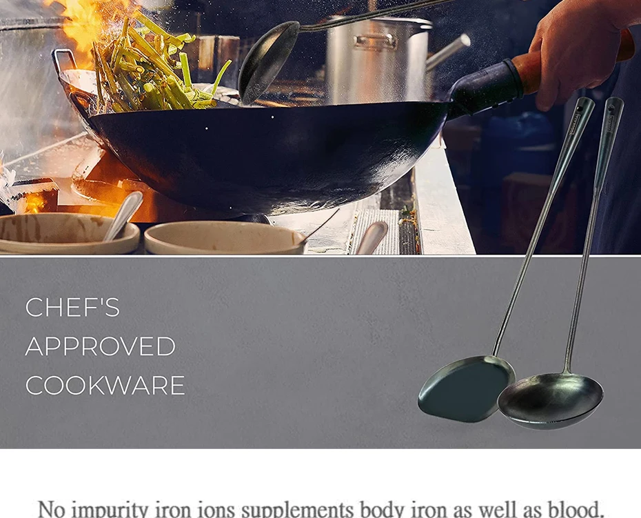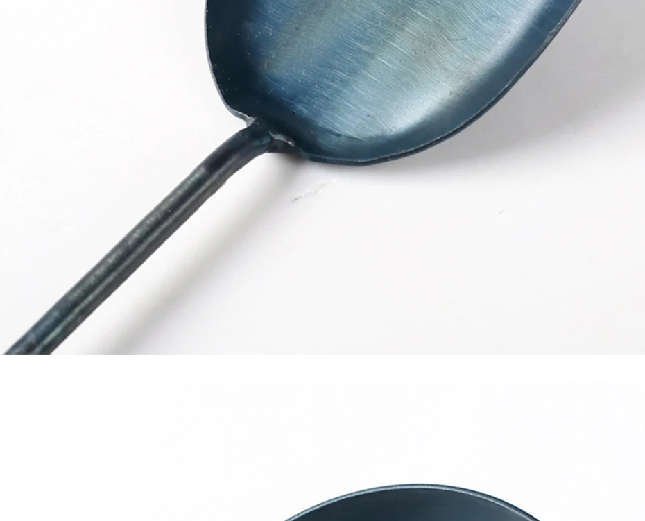 3.Uncoated Surface: Our iron wok tool set has a blue-black surface with the chemical composition ferroferric oxide ( Fe3O4 ), which can benefit your health.
