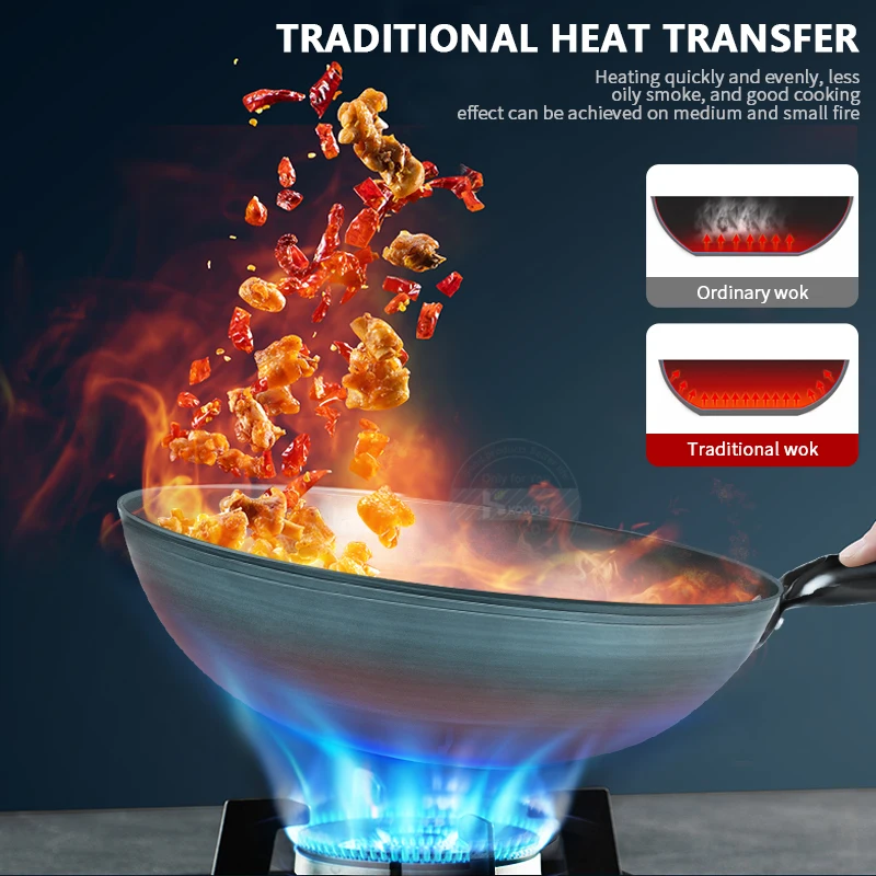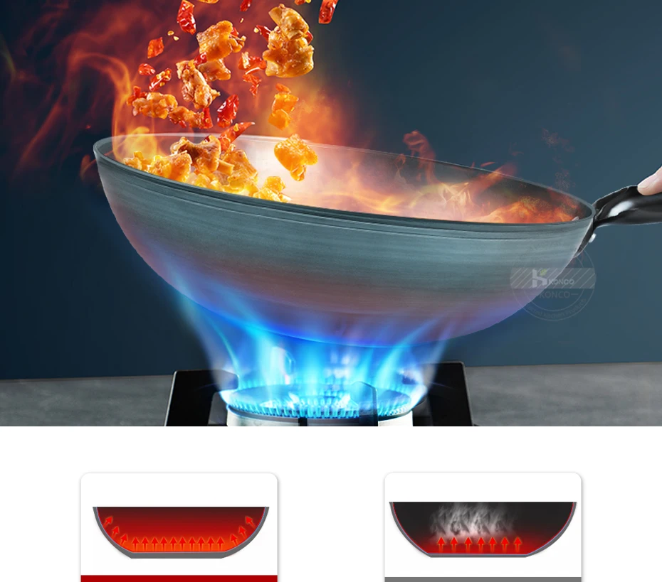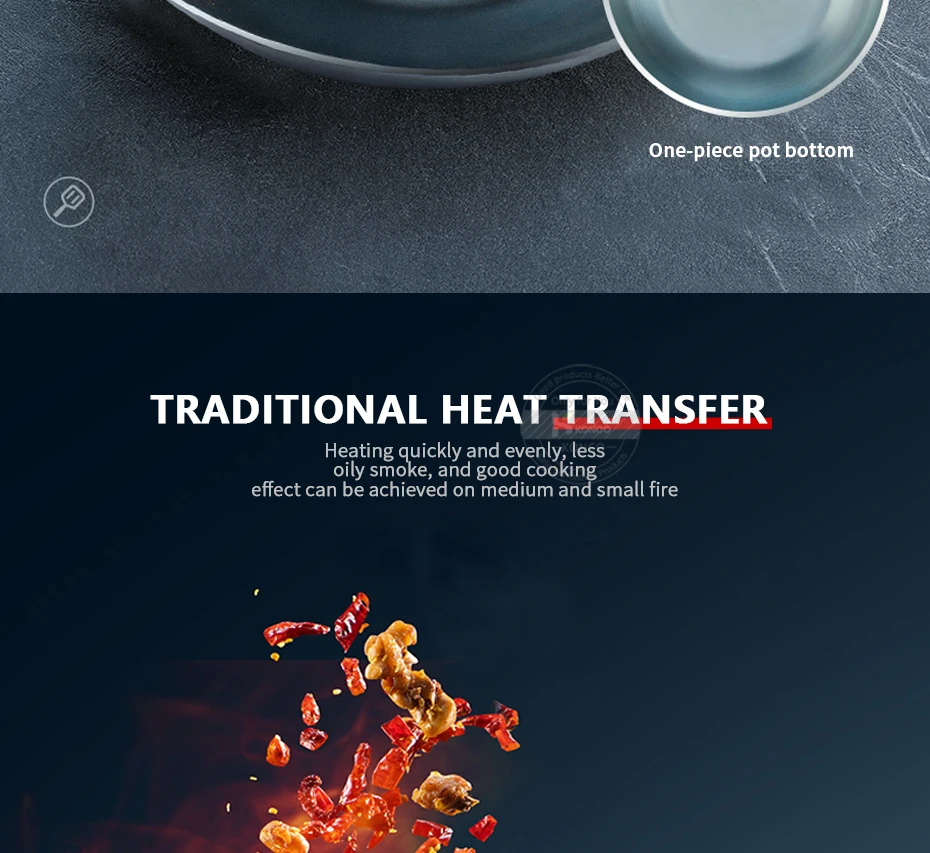 3. Flat bottom design: The bottom of the pot is designed with a flat bottom, which can be fried, heating quickly and effectively concentrate the firepower, saving time and energy for cooking