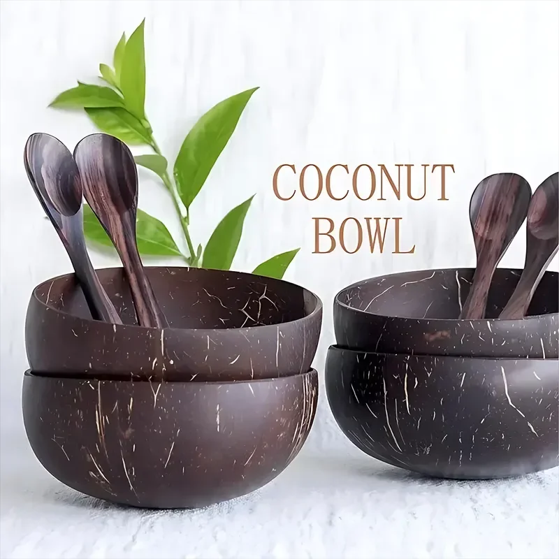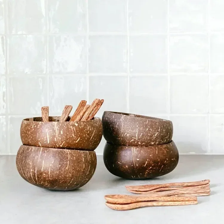 Handmade Natural Coconut Shell Bowl and Spoon Set for Kitchen