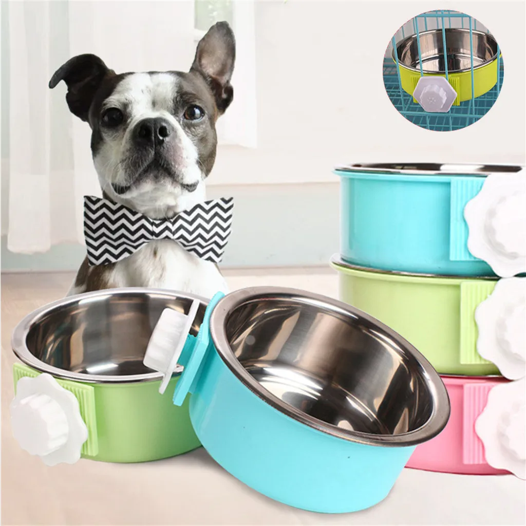 Pet Food Bowl Hanging Stainless Steel Pet Bowl Dogs Supplies Fixed Cat Bowl Cats Dog Crate Drinking Bowl Little pet feeding