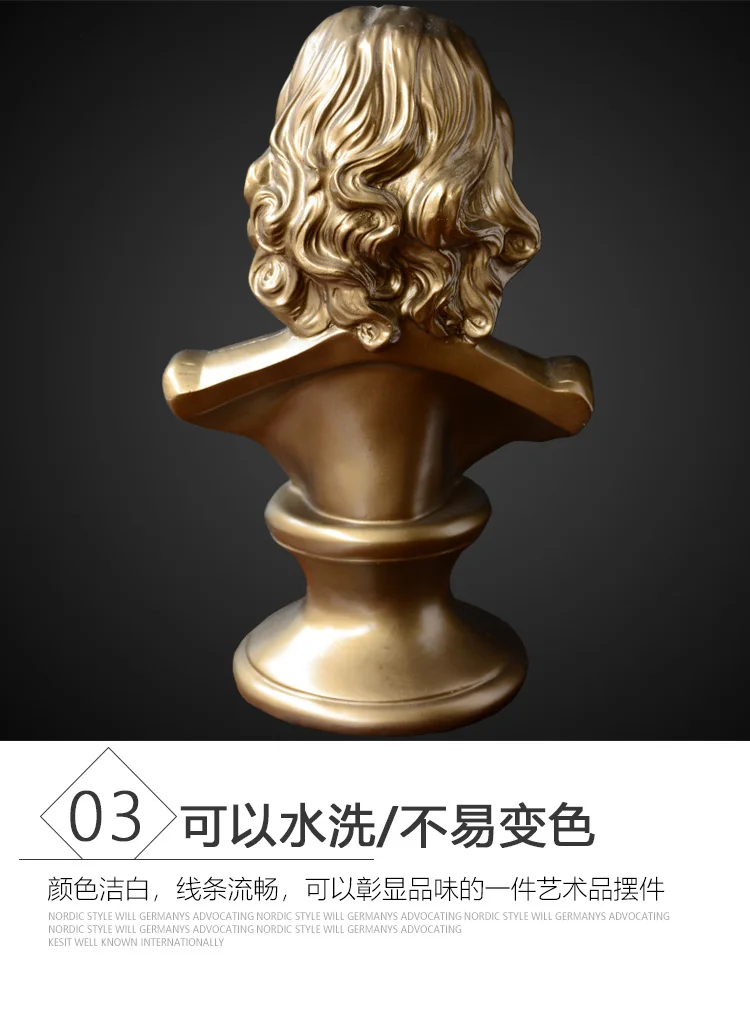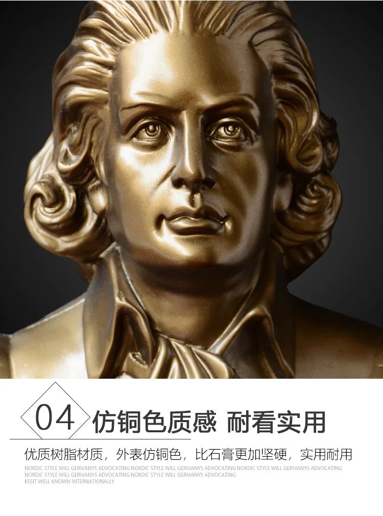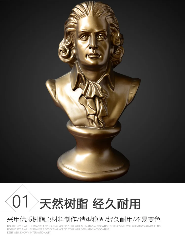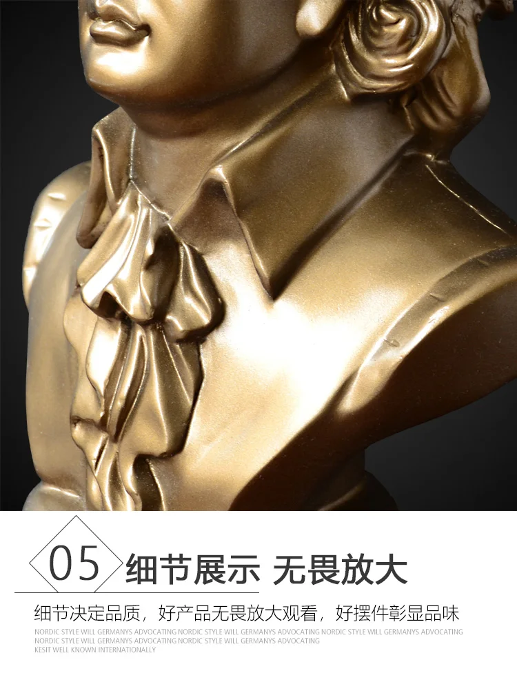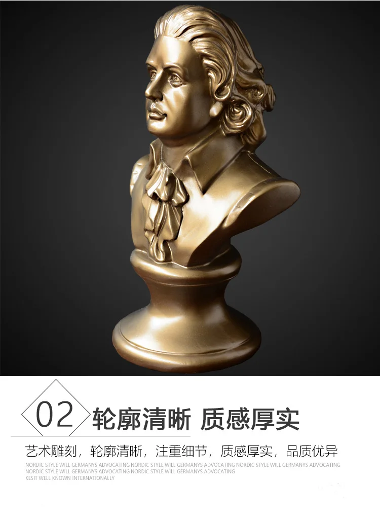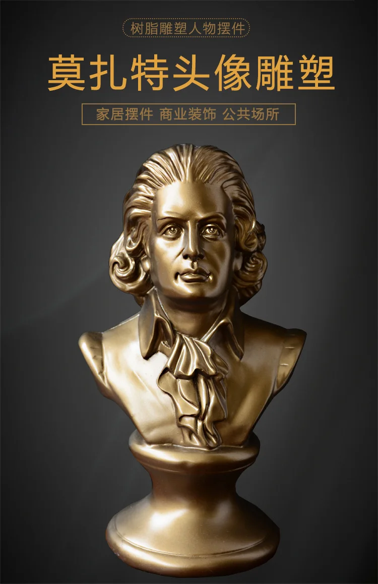 Harmony of Genius: Mozart Head Sculpture – Musical Figure Ornament for Piano Décor